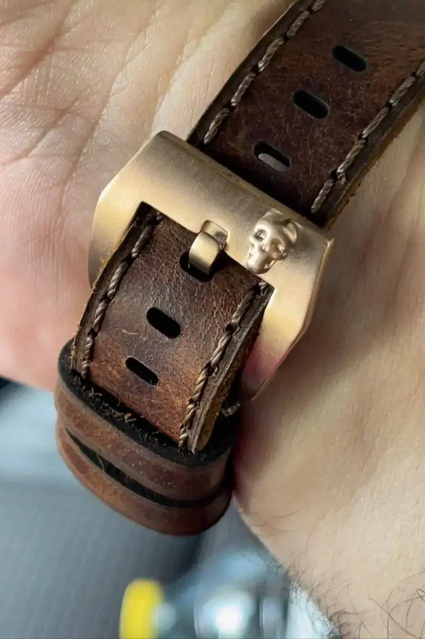 La otra es una correa retro bastante fiel a las originales de los primeros Radiomir que es totalmente plana y su acabado es a chorro de arena.