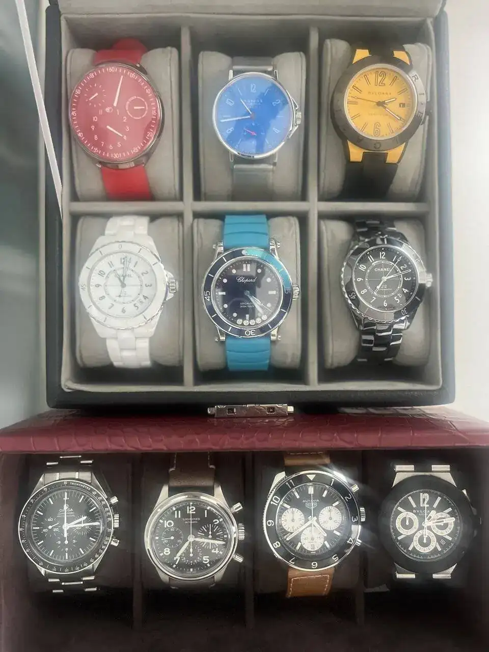 Omg!!!! 😍😍😍😍😍😍 si alguna caja no sabes donde guardarla avisa que estaré encantado jajajaj que maravilla de COLECCIÓNBueno, pues para cerrar el año de una forma especial, y aprovechando que he tenido los relojes todos en casa unos días por Navidad, he podido actualizar el retrato de familia con las incorporaciones de los últimos dos años. Me he dado también cuenta que el número entre los míos y los de mi mujer (que muchos me pongo yo al ser más “de hombre” realmente) es una cantidad redonda: 100 🤦♂️. Así que buena ocasión para reponerlos en este hilo. La anterior vez que los puse fue en el primer hilo de “Muestra tu caja” hace ya tiempo.