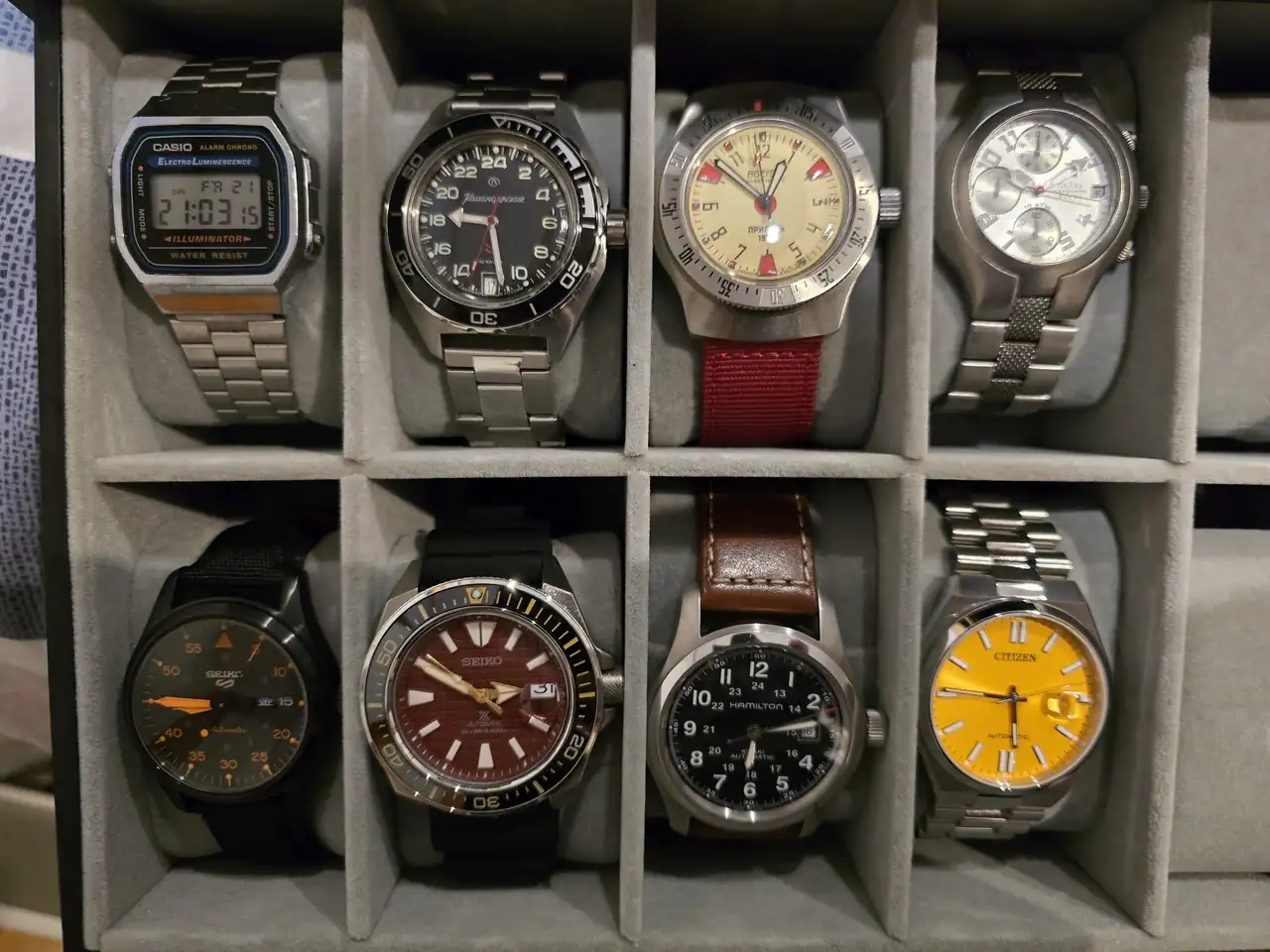 PD2: El Seiko negro también tiene un recuerdo especial, por que fue comprado en Japón y el Vostok de 24 horas, también tiene un cariño especial, por que fue comprado en Rusia.