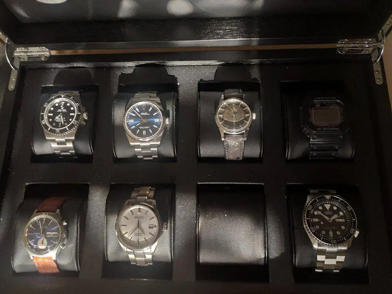 Qué preciosidad de colección compañero, me parece equilibradísima tanto en tipos de reloj como en edad de los mismos. Disfrútalos mucho.Venga pues actualizamos caja, después de diversas salidas y entradas, me encuentro en un momento zen 😀