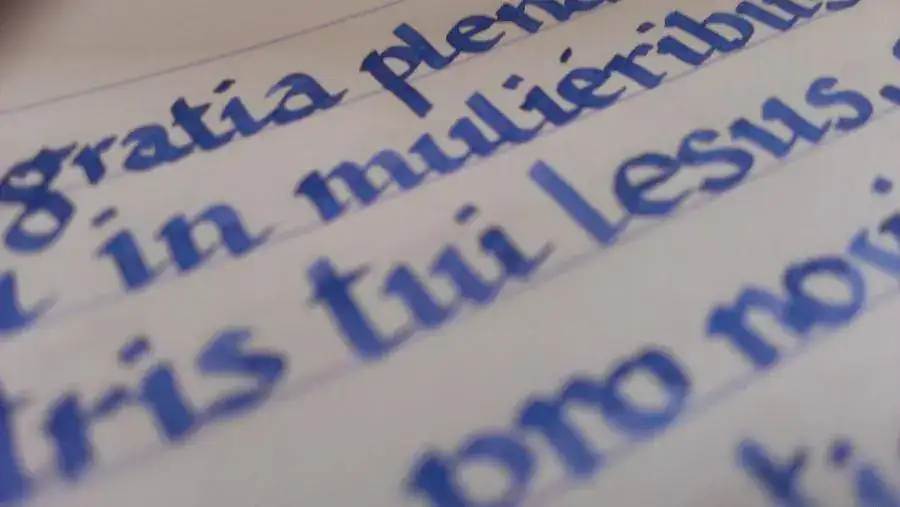 Las iniciales con tinta china roja están hechas con plumillas caligráficas Hunt Speedball.