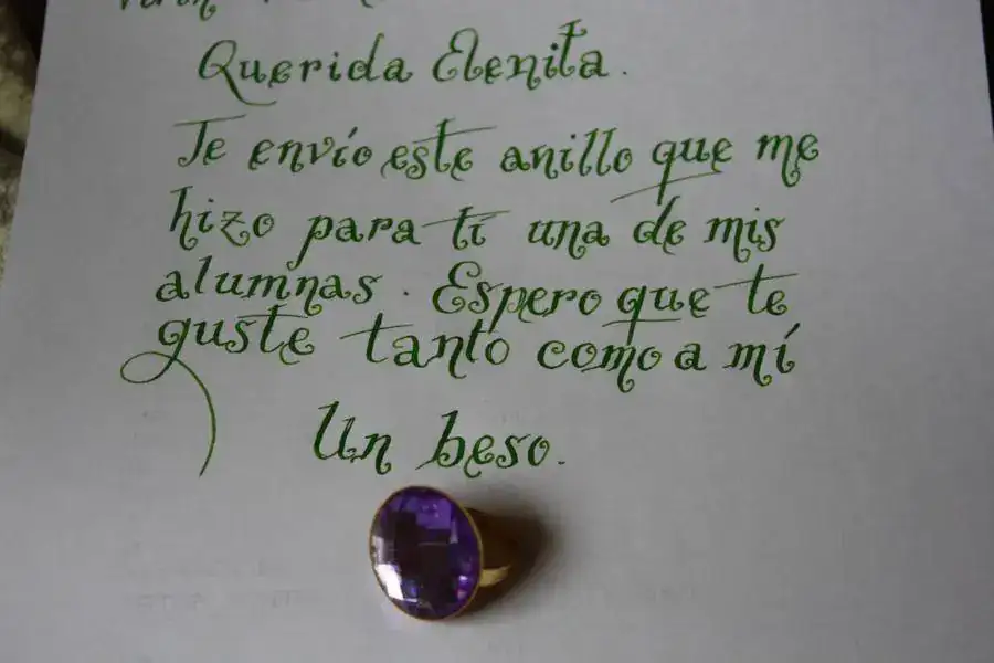 Así que la he utilizado para escribirle una cartita a mi ahijada con un anillo que me ha vendido una alumna. Si a alguien más le gusta la chiquilla seguro que hace más encantada de la vida