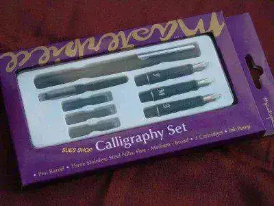 , me he hecho con un par de sets caligráficos Pilot al increíble precio de 3 € cada uno. Vienen tres puntos: M, B y BB y 2 cartuchos de tinta negra. Por si fuera poco, escriben