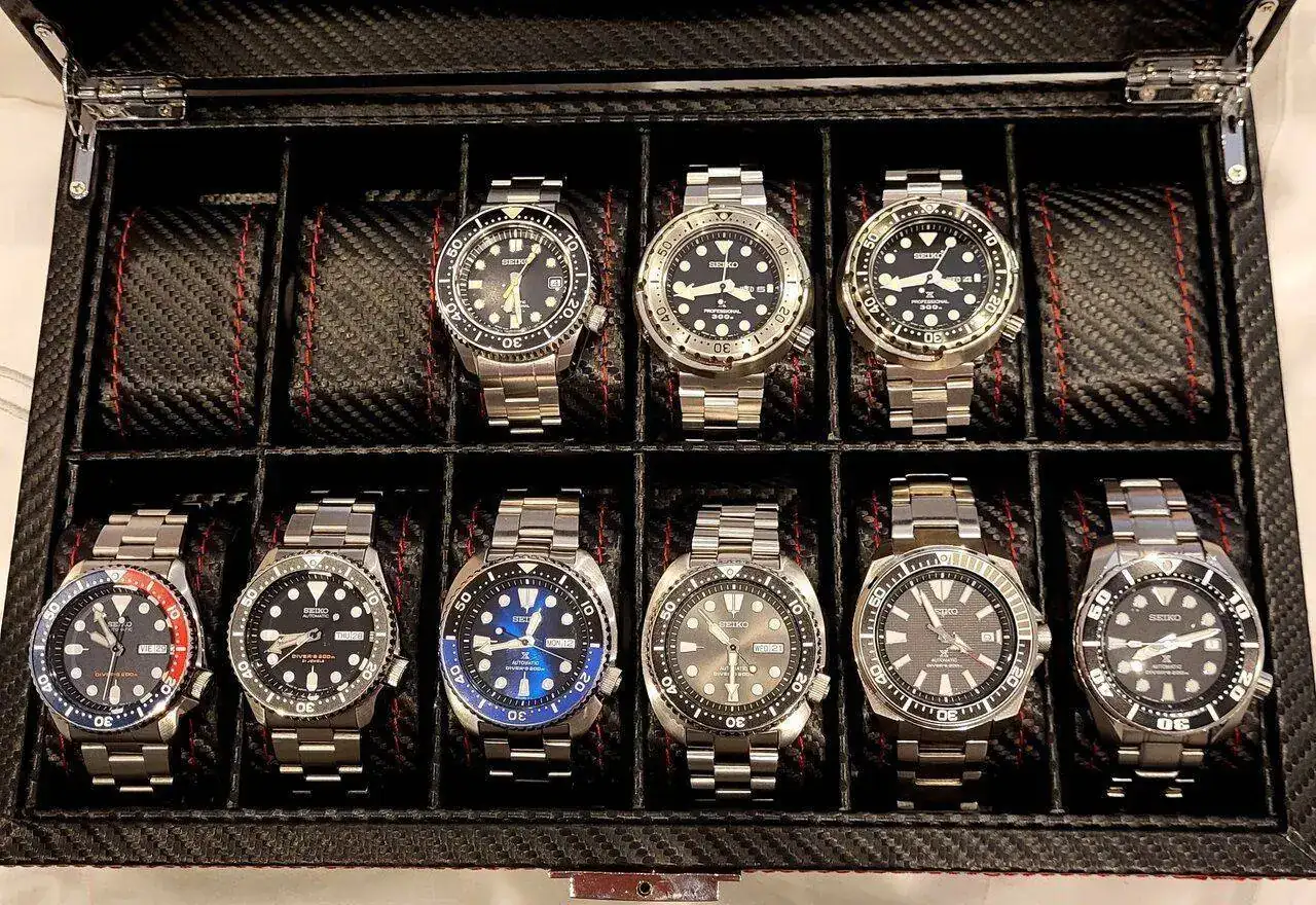 Tienes razón, los Tuna son adictivos. A parte de los tres Seiko, tengo cinco copias chinas que he usado para cambiarles el bisel y trastear con ellos, son quizas los relojes con los que me siento más a gusto. El Uemura lo miraré, es lo que tiene Seiko, es un sin parar. Por cierto, tambien en casa hay un Seiko Speedtimer blanco, pero ese lo lleva mi mujer casi a diario, así que no está en mi caja ....... Un reloj que me encanta, pero lo veo muy, muy pequeño para mi muñeca, a ver si un día lo sacan en 42-43Esq los Tuna son guapísimos, siempre los tengo ahí, en mente como futuribles, pero tendrán q esperar q ahora me viene de camino un Willard, q yo creo qse ve pequeño por el L2L, igual el Uemura se ve más grande ya q es más largo![]()