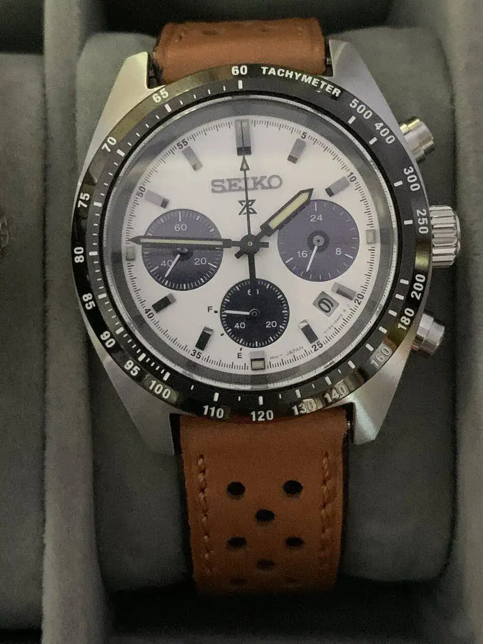 Es una pasada ese Seiko. Me parece el más bonito de una caja envidiable. Enhorabuena!La primera foto no le hace justicia, te envío una en la que se aprecia un poco mejor el detalle de la esfera. El segundero del crono parece más descentrado de lo que está en realidad por el ángulo de la foto. Lo he intentado centrar, que se puede, pero siempre queda muy ligeramente descentrado, aunque en la foto parece mucho más que en la realidad que es muy poca cosa:Ver el archivos adjunto 2496403