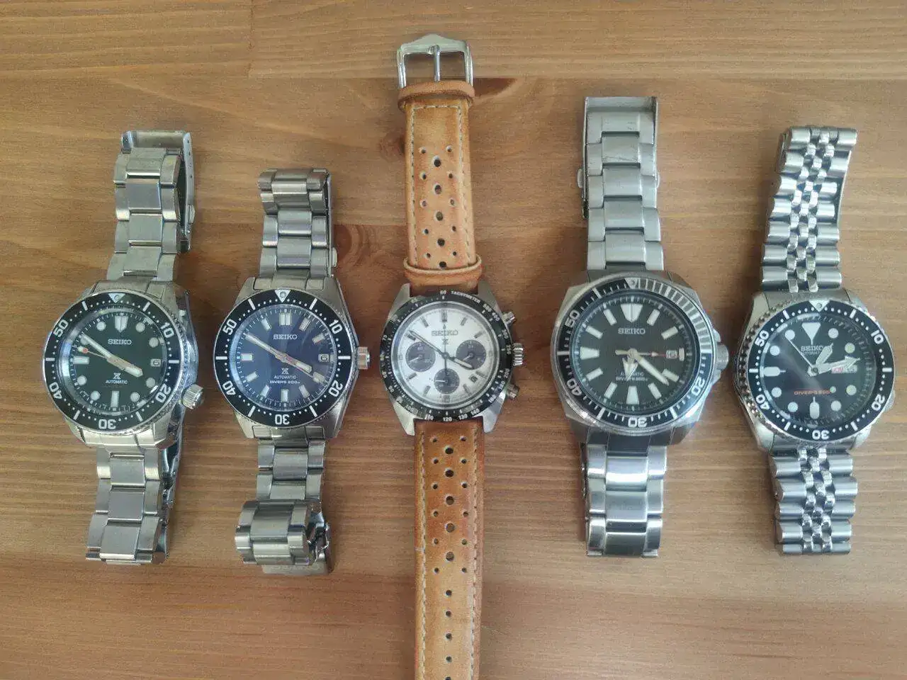 Me encanta ver colecciones Seiko, de variedad y relojes bonitos está sobrada la marca. Pongo los míos hasta este mes que he estrenado el último en llegar, el 7A48 Fases Lunares. En la foto de grupo hay dos con correa, el SARX y el Alpinist, que suelen estar siempre con su armis, sobre todo el Alpinist. De todas formas en esta foto no se ven bien, comento aparte cada uno con más fotos.