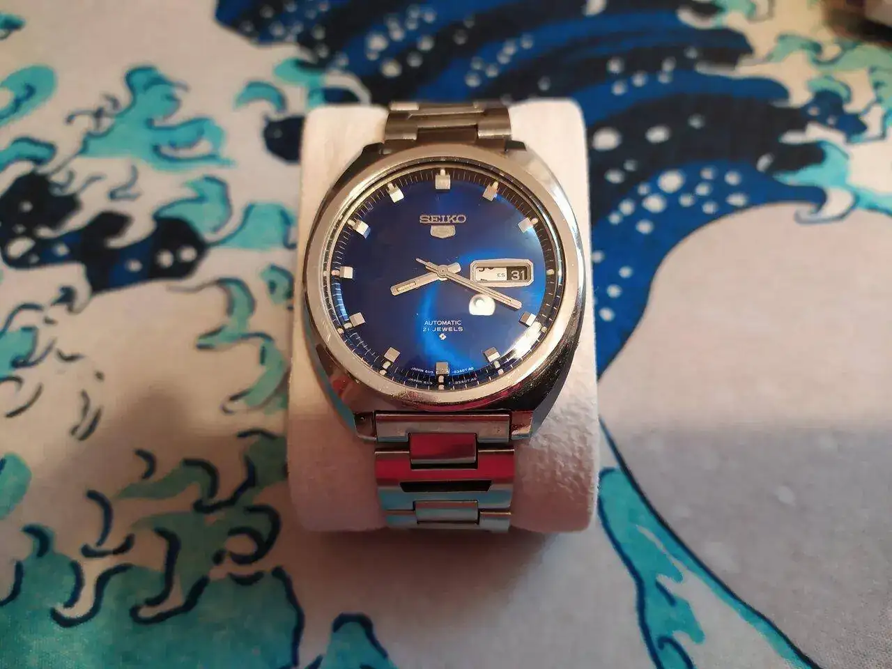 SEIKO 7005-2000 de 1969. Es mi Seiko más antiguo, pero se usa como si fuese un reloj de ahora, coge cuerda nada más moverse y tiene el mismo cambio rápido de fecha que cualquier reloj más moderno. El tamaño de 37mm es perfecto para un reloj de su estilo. La esfera es el clásico diseño que Seiko sigue haciendo en muchos de sus relojes, puede recordar a muchos Presage, Cocktail, Seikos de cuarzo más o menos de vestir...Es atemporal, otros de mis relojes de la misma época parecen mucho más antiguos que este. El otro igual que aparece en la foto de grupo es el mismo modelo pero de 1971 y con una correa extensible Speidel vintage.