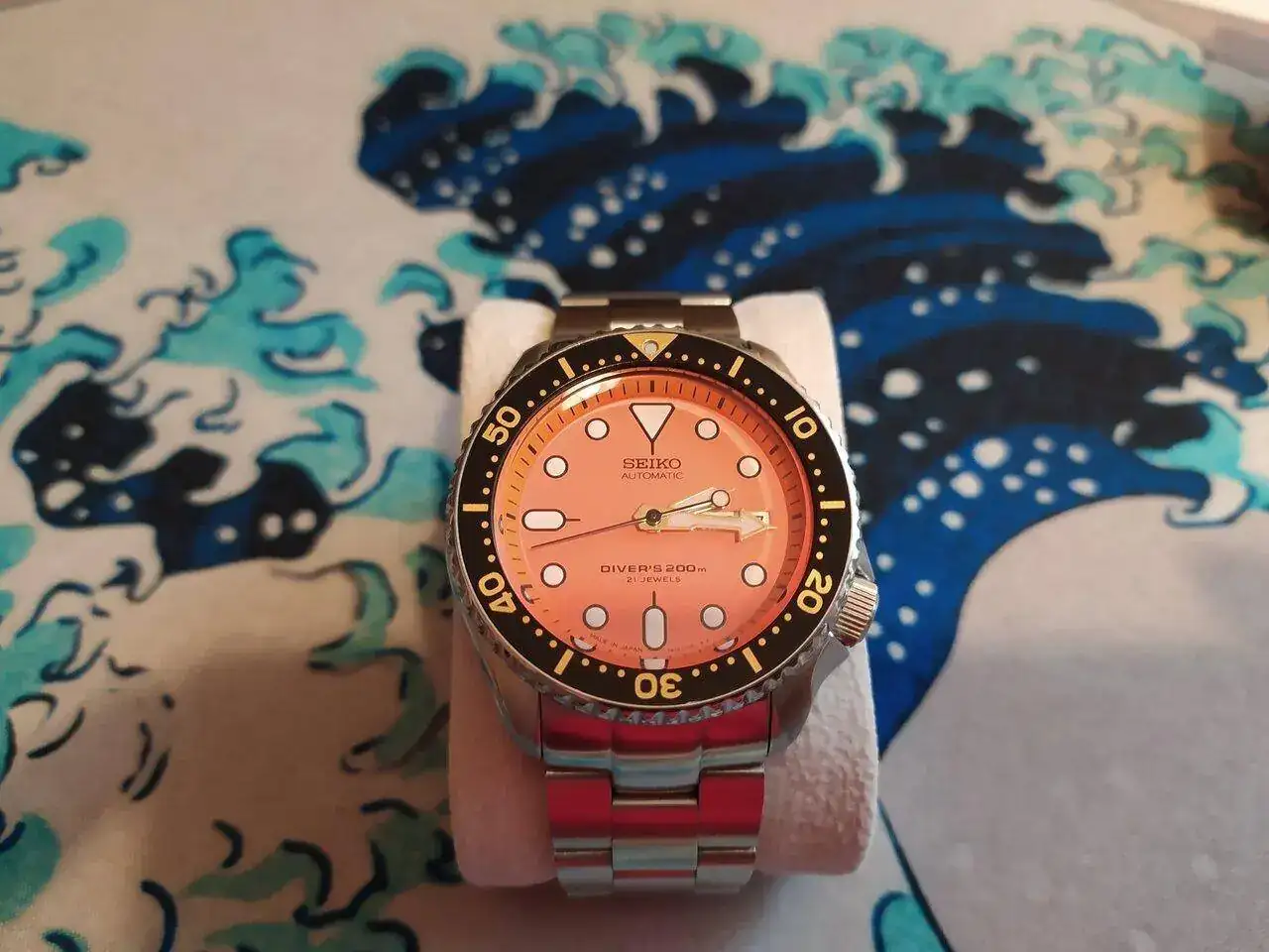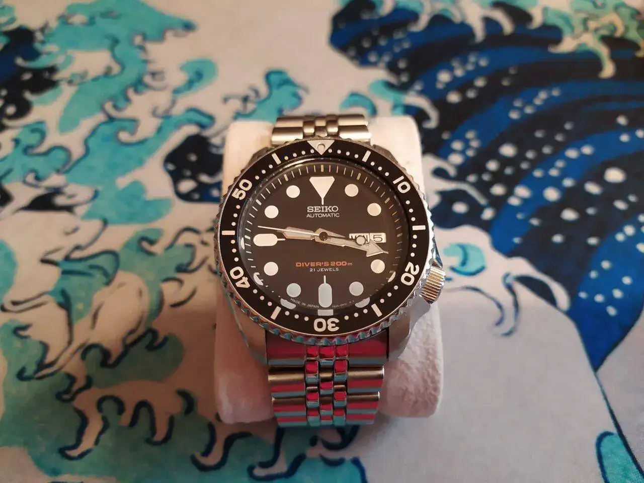 SEIKO 7A38 de 1986. Fue mi primer 7A, igualmente perfecto de funcionamiento aunque algo más gastado de aspecto, pero aún está muy bonito. Me encanta el diseño de su brazalete original con unos eslabones que recuerdan al del Patek Nautilus. Es muy ochentero, tiene mucho encanto.
