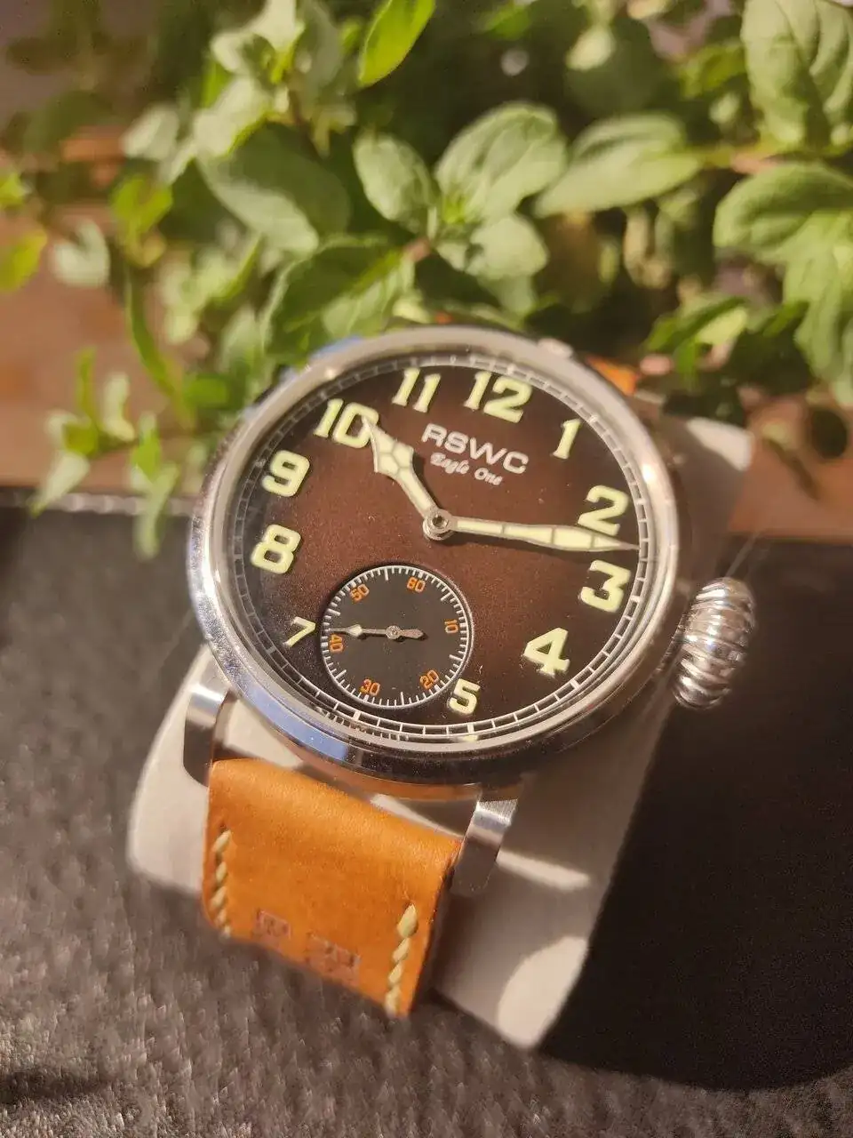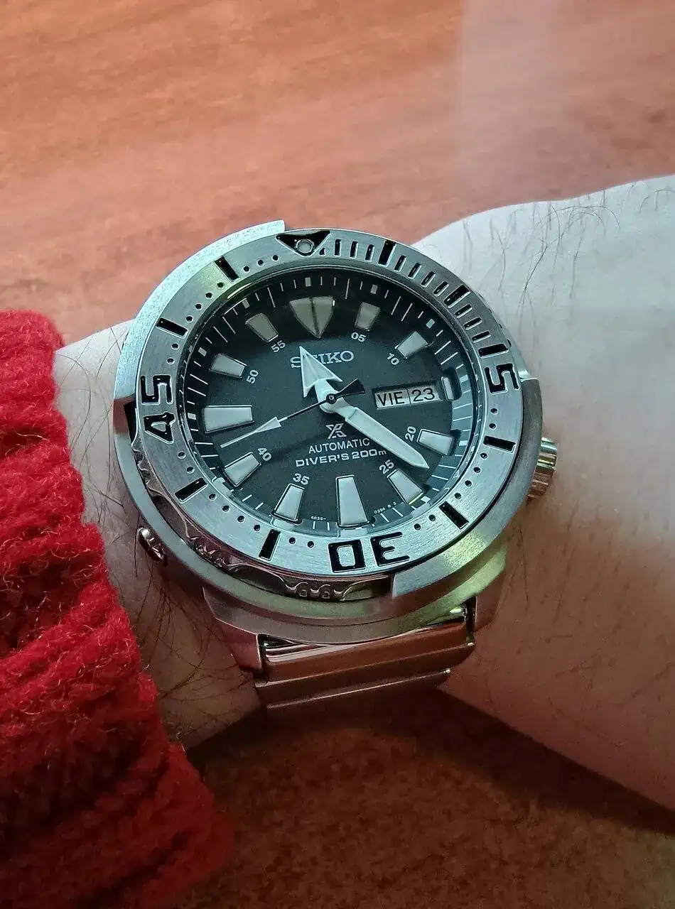 Yo un 44 ya lo encuentro grande!El reloj de pulsera más tocho que tengo, difícilmente superable en dimensiones: 60 mm sin corona, 77mm con corona. 20mm de altura y más de 250 g de peso... diseñado a principios de 1950, Vodolaz ChS 191.
