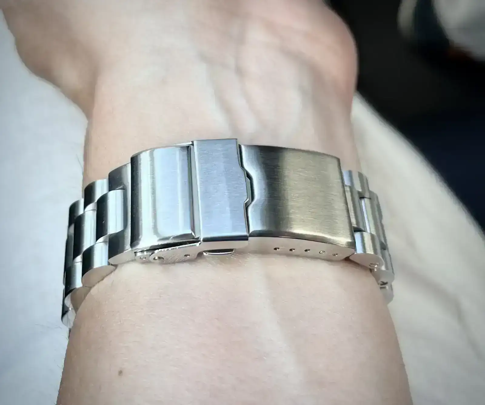 El cierre es de la propia marca y le vale en teoría para todos los brazaletes que acaben en 18mm como es el caso del 5SKX , lo único que es tan fino que cierra justo a veces parece que ha cerrado pero no, hay que apretar más fuerte y asegurarse, si lo pones en los últimos dos agujeros cierra más o menos bien, si no costará más, y eso que indican que es válido para brazaletes de la marca entre 3,5 a 5 mm de grosor (el mío es de 4mm), aún y todo para mi merece mucho la pena por ser más ligero, cómodo y mucho más bonito, lo compré en Amazon por unos 32€Muy chulo tengo la edición española con jubilee de strapcode y también le queda muy bien, por cierto ese cierre de donde es ¿?