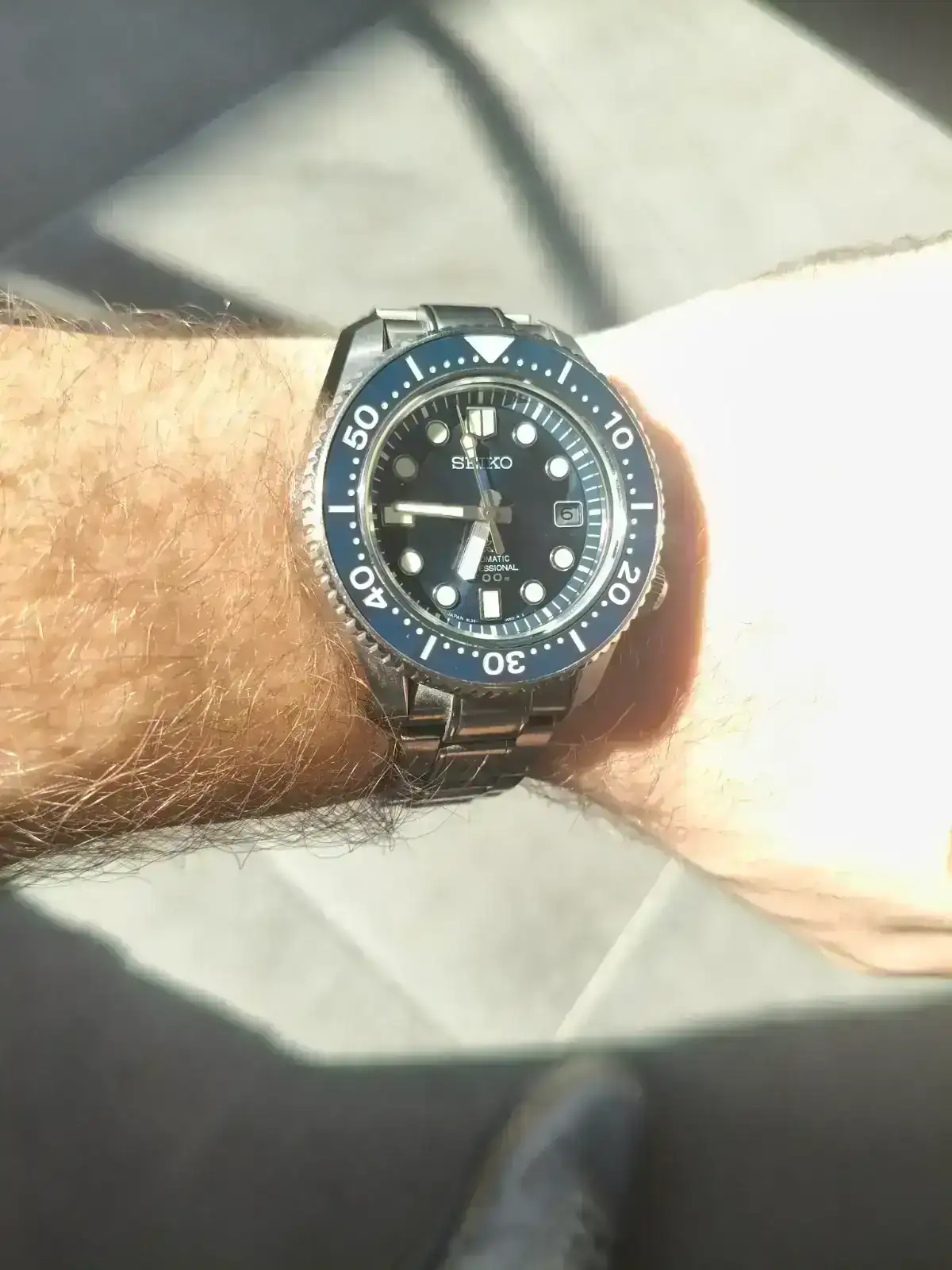 Así es compañero, hay ocasiones que es un color gris, otras verdoso, otras azul intenso. Tal ocurre con el agua del mar. Es un espectáculo de reloj. En ocasiones he estado tentado de hacerlo con otro diver, pero es ponerme este y llenarme completamenteLa variación de tonos según la luz es espectacular