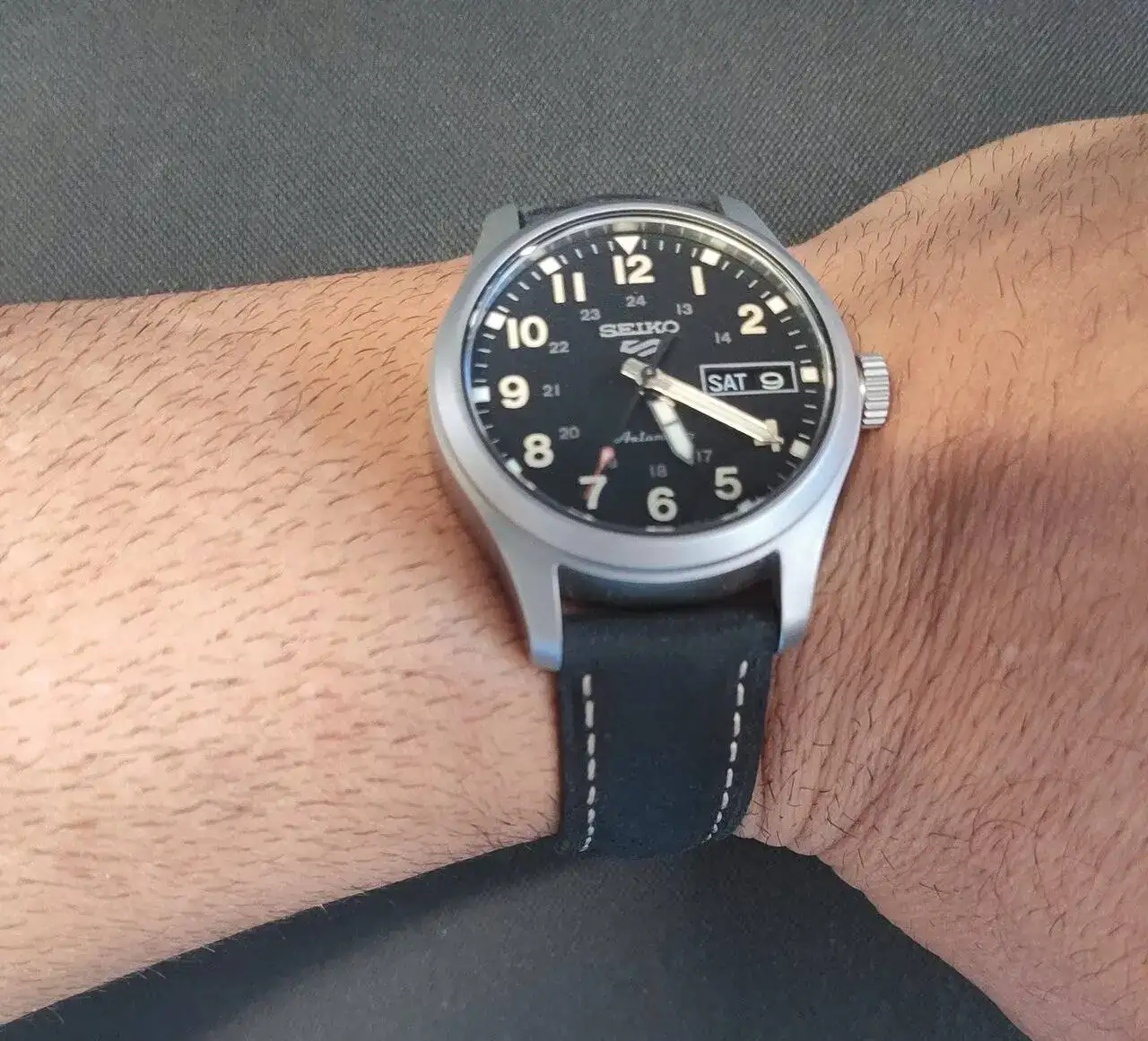 Perdona, pero en este hilo sólo se publican fotos de relojes de 39 mm de diámetro o menos…Caja 44mm y correa Steinhart; dial California, agujas y 6498 en pvd negro de la web.