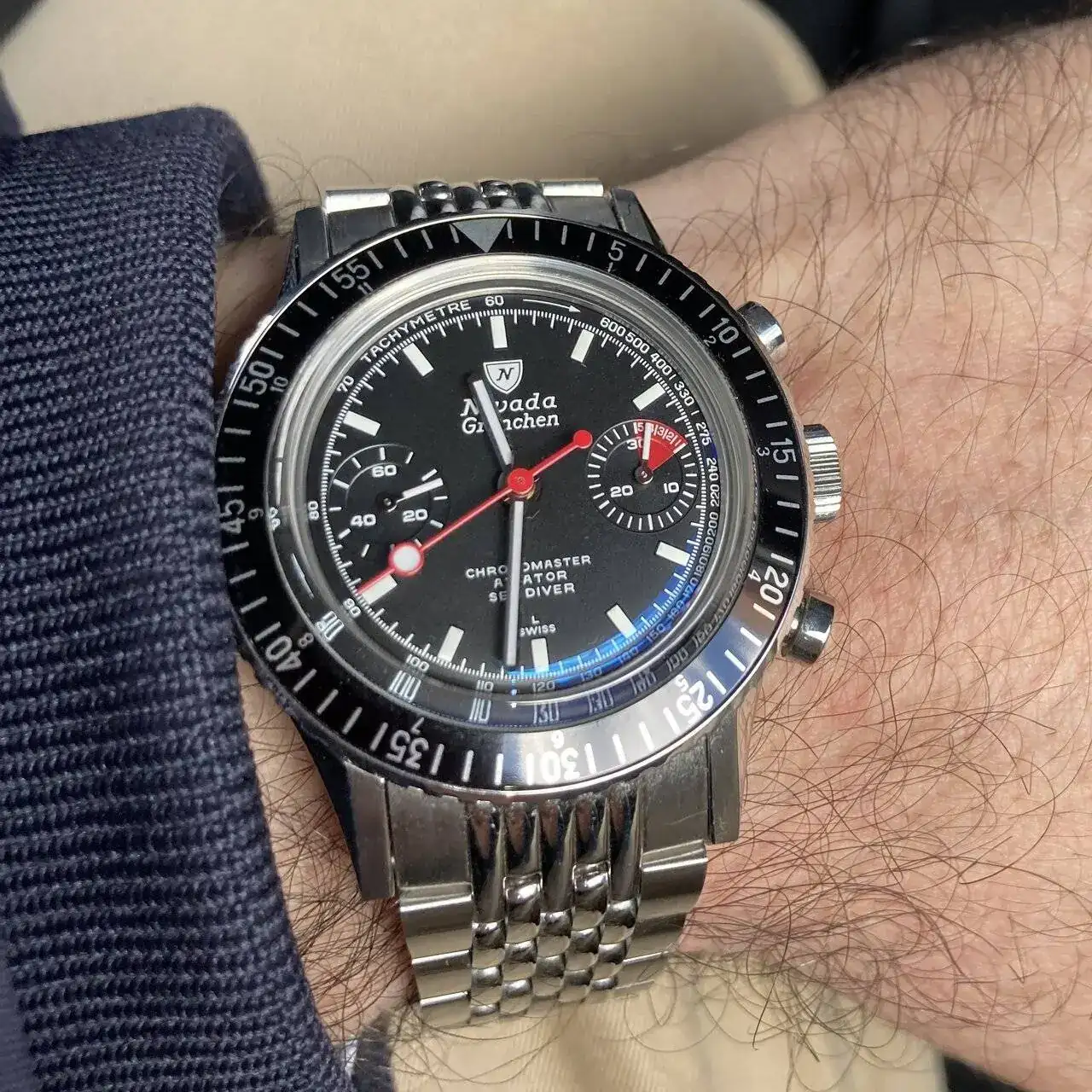 Tienes las dos reediciones más bonitas y fieles al original que se han hecho ultimamente. Éste y el Hamhart 417 39mm. Me encantan ambos. Un saludo
