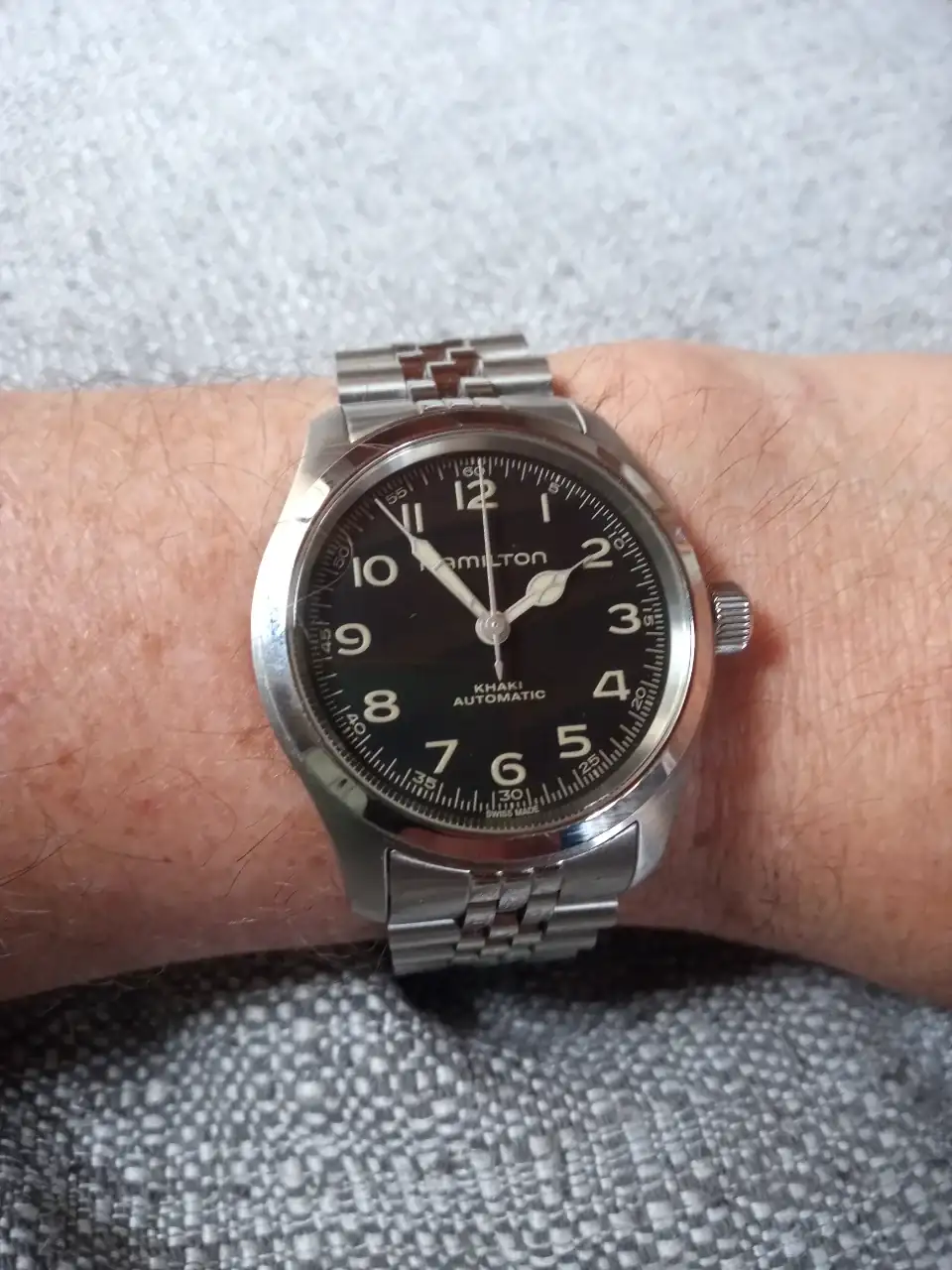 Ya era bonita la esfera, agujas, caja… Me encanta con correa, pero es que con ese brazalete queda fenomenal, Luis!