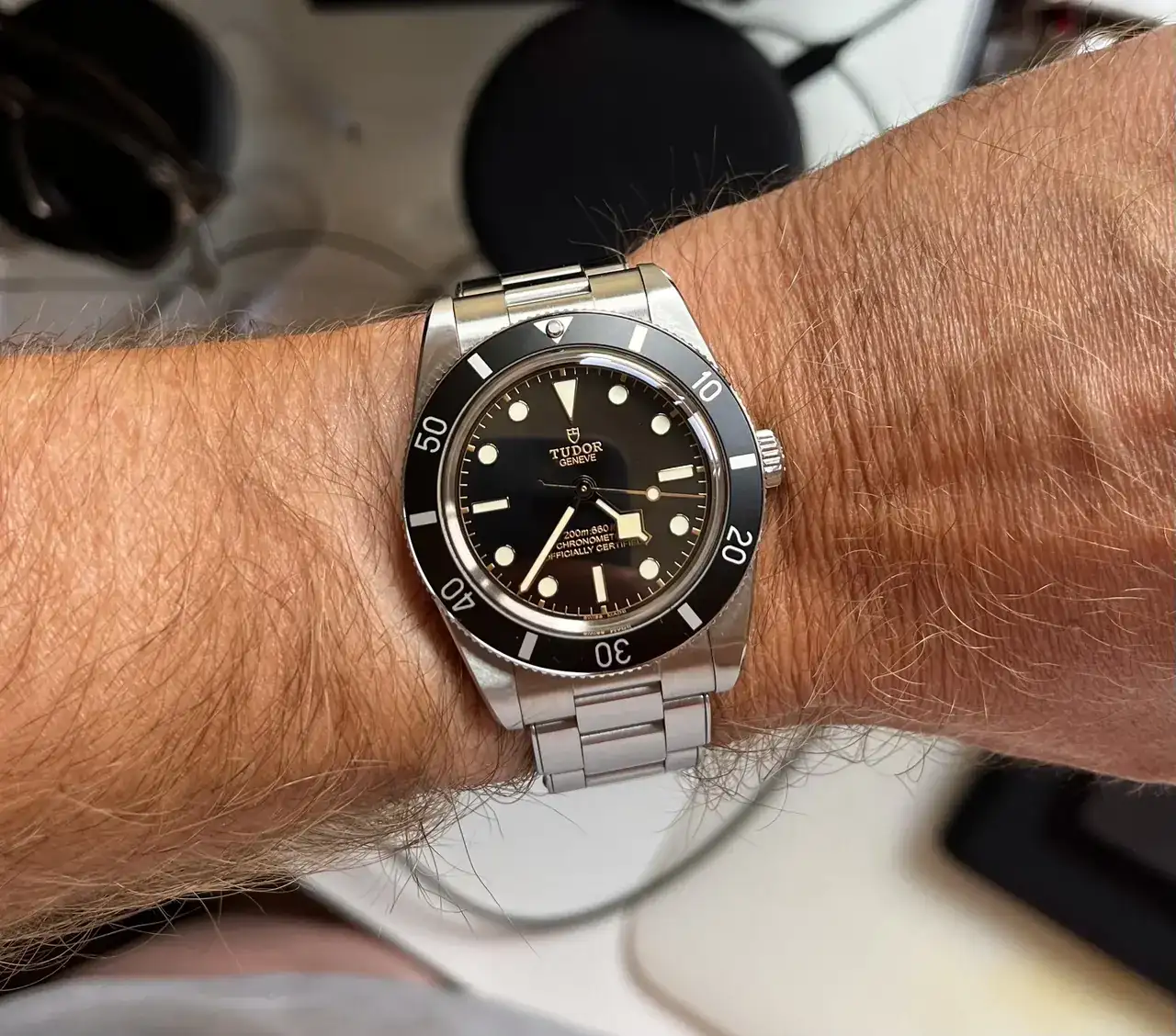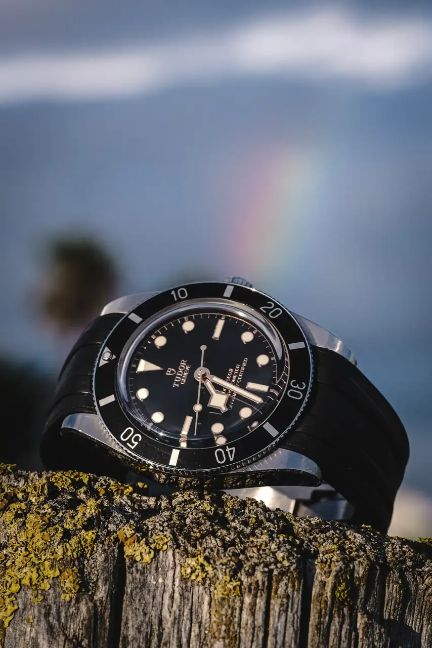 No tienen 15mm de altura total, sino 13,5mm (que no es mucho menos, ni es poca cosa, dicho sea de paso), pero unos 2 ó 3 mm se los lleva el zafiro abovedado, por lo que no se siente tan mazacote… Viene con una Bund, pero eso lo eleva todavía más en la muñeca, por lo que yo siempre lo llevo con correas de dos piezas. También existe brazalete de acero para él, que me estoy planteando comprar porque este reloj me gusta mucho, mucho, y a veces descarto la piel (por calor, humedad…).