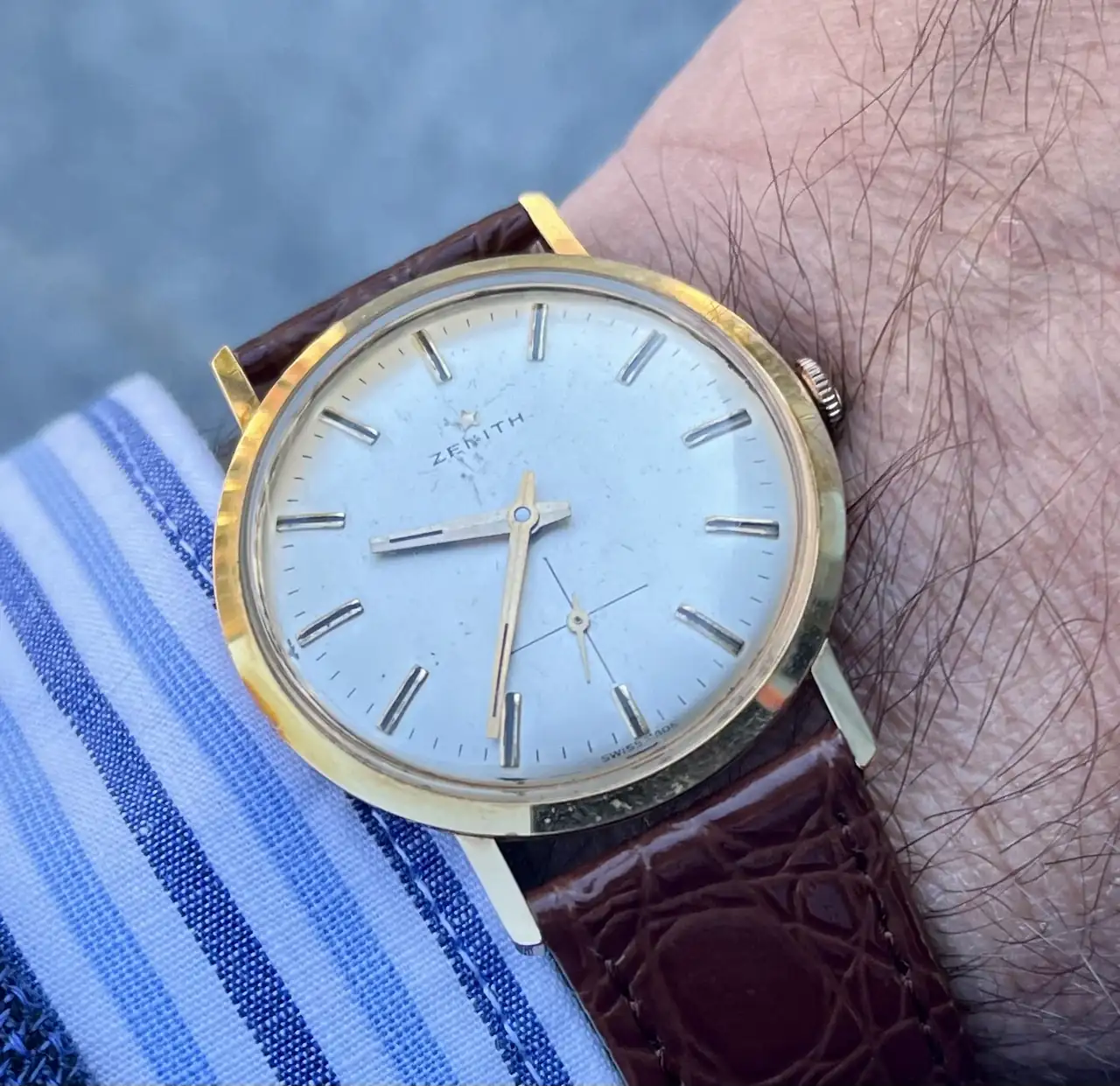 ¡Muchas gracias, compañero! Este es el de 39mm (nota: todos mis relojes son de menos de 40mm… soy Talibán en cuanto al diámetro). Esta medida es la que tenía el modelo original de 1954; la otra versión reeditada es de 42mm, para los que quieren una parabólica un reloj con mayor presencia…