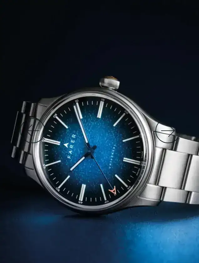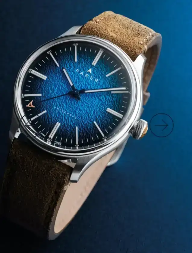 3 agujas, LJP G101, 3 diales diferentes (cada uno con su color, al estilo Farer… “es que a mí me gusta el de índices pero en rojo…”, pues te fastidias porque sólo lo tienes en azul).