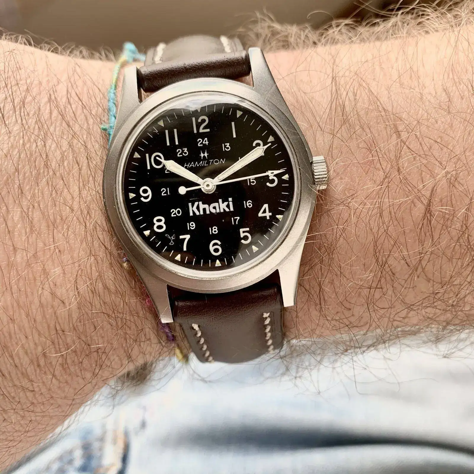 Muchas gracias acrolyu. Ya sabes que los field watch son mi perdiciónDetracia que linda pieza, como se ve en muñeca, mas grande?? saludos amigo!