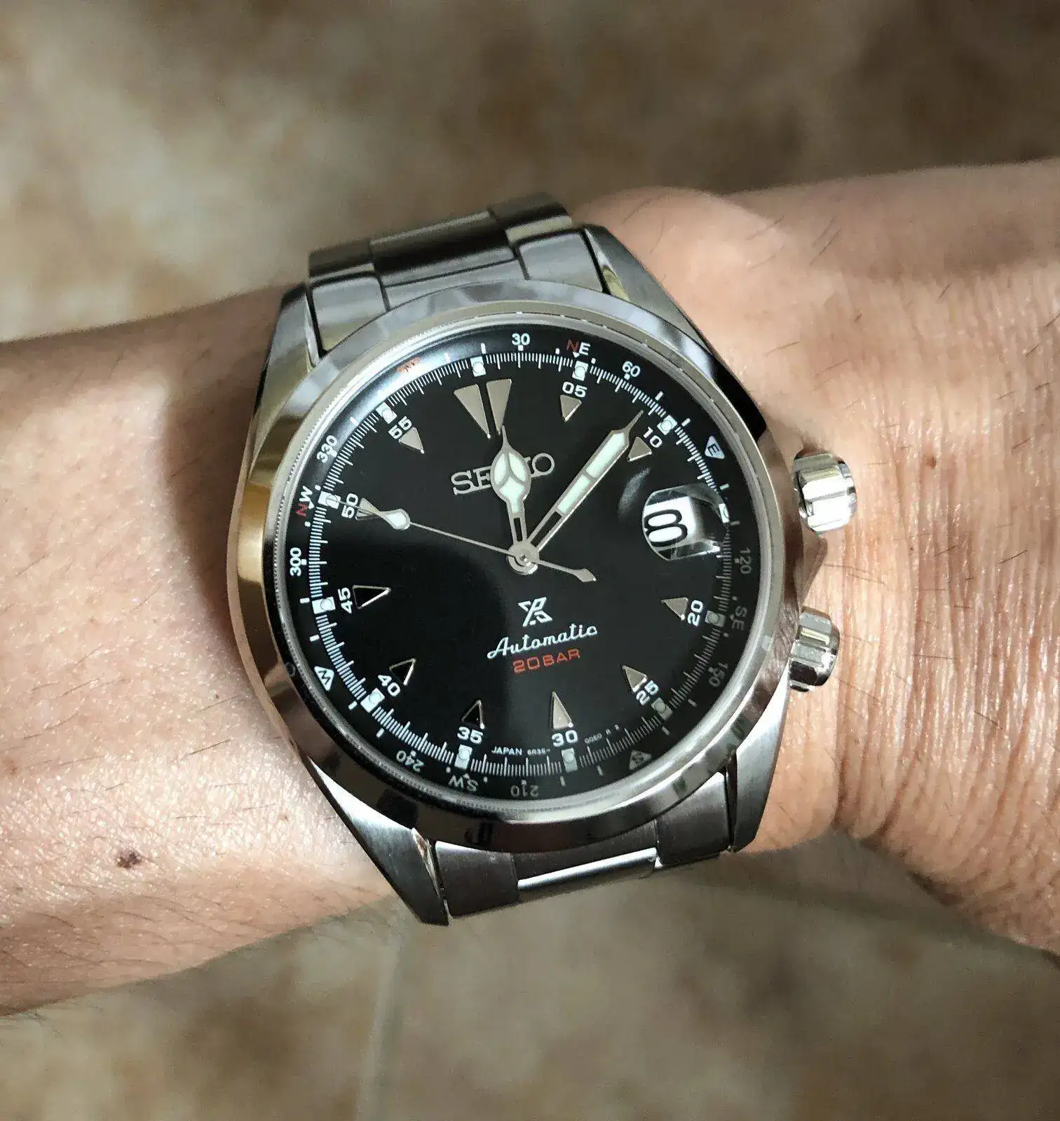 Vino de Japón perjudicado por la humedad ( a saber por donde llevaron el reloj ) y me lo lleve sin tocar por mi relojero a una excursión a Palencia para ver q tal marcha llevaba ; paso bien la prueba sin fallar ni atrasar; al volver a casa si q lo lleve al relojero y actualmente tiene el plexi una raja desde las 5 hasta las 2 pero no me molesta, le da un " aire" mas vintage .Muchas Gracias por el comentarioUna belleza. Que suerte disfrutarlo en estas condiciones tras tantos años