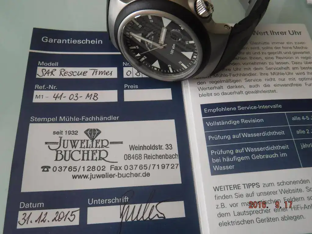 Hola, saco a la venta este precioso muhle SAR rescue timer, el reloj es del último día de 2015 y está en perfectas condiciones.