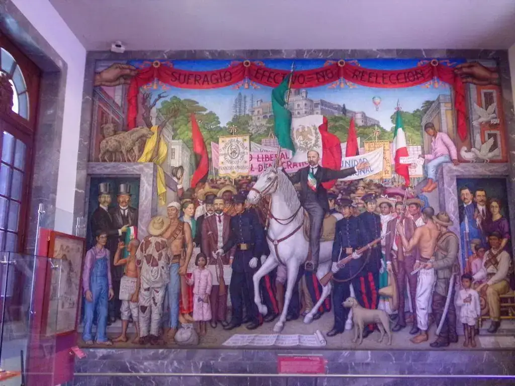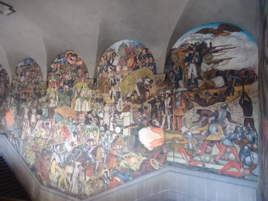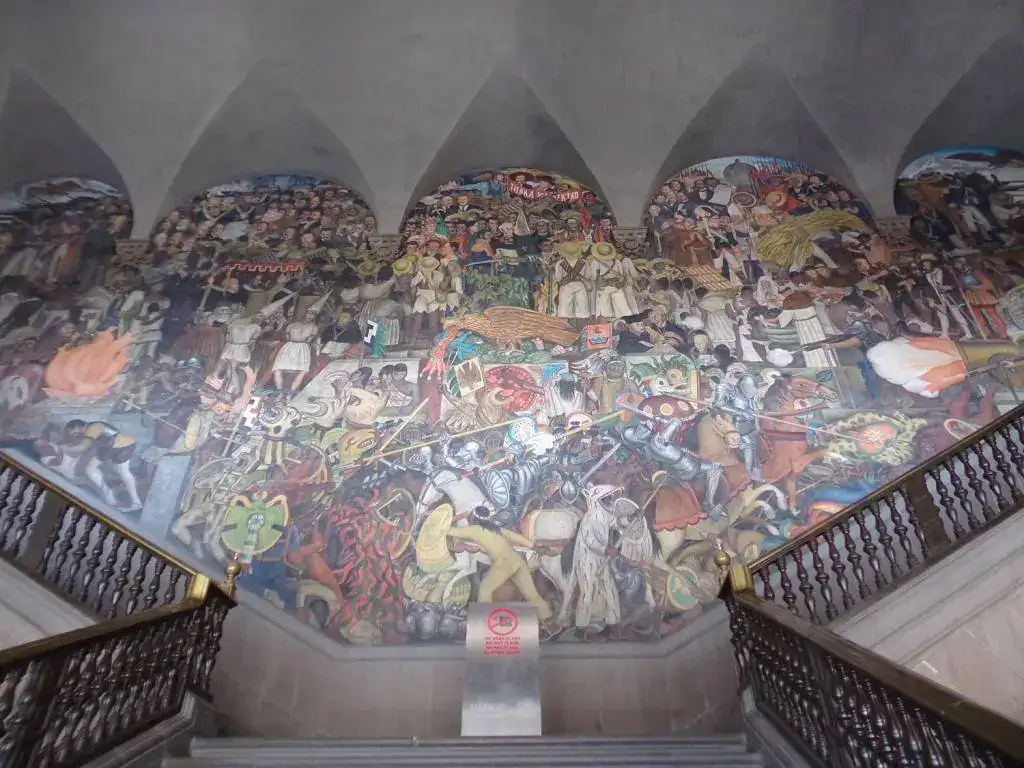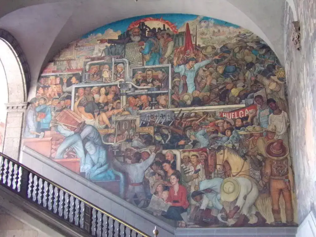 El muralismo mexicano es único, irrepetido y unánimemente valorado y de una descomunal belleza. Tiene una yuxtaposición de órdenes simbólicos, una amalgama continua y popular que junta en un guiso de imágenes lo aborigen, la perversa irrealidad y vaticinio claudicante de los Dioses, la magnificencia de la pureza, el horror, los suplicios; una exacerbado nacionalismo que traspira, suda, empapa y baja desde las paredes y te moja con una ola de emociones e incoherentes pensamientos. Ves las alegorías, las fábulas, las apariciones, las guerras, las matanzas, el reencuadre y la superación de un pueblo ( o los pueblos fundidos en uno ) que ha luchado desde siempre por imponer su carisma, su color, sabor y música.