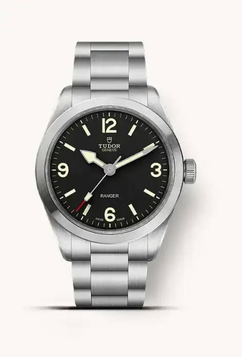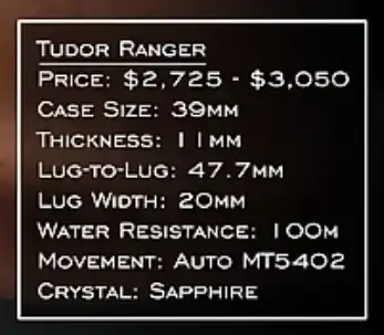38mm, 150m water resistant (más que tus dos opciones), zafiro domed, corona roscada, fondo ciego y con grabado en relieve, pasadores de cambio rápido (que no lleva ninguna de tus dos opciones), cierre con ajuste rápido (como el Ranger, aunque con otro sistema), calibre Sellita COSC (como el Ranger, aunque con menor reserva de marcha)... ¿Sigo? Si tuviera tiempo, te haría una comparativa con el Ranger, y verías que no tiene nada que envidiar en acabados respecto al Tudor, y que está muy por encima del Hami. Eso sí, tendrías que pillar uno de segunda generación, que tiene otras agujas y otro logo distinto. De intangibles va peor servido que cualquiera de tus dos contendientes, ya que la marca es mucho más nueva. Pero si esto último no es problema, te lo recomiendo como la mejor opción calidad/precio sin dudar.