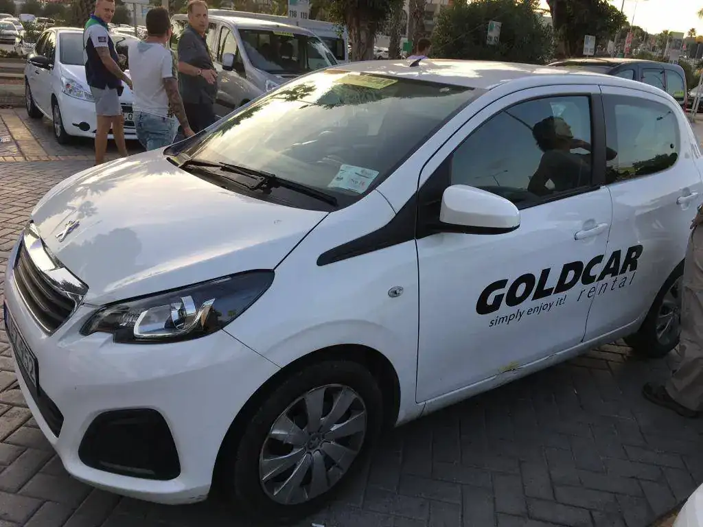 Al entregar el coche el día 21 de Octubre unos chicos en camiseta, tatuados, en tono chulesto y sin identificar por la empresa nos dicen que tiene un rayón en una esquina del coche a la altura del faro. Se ve claramente que está realizado seguramente por unas llaves y que tiene apenas unos 3 centímetros de largo. Nos dicen que tenemos que pagar por ello 500€ (a parte del depósito, el cual en teoría devolverían pasados unos días). Inmediatamente veo que se trata de un engaño, que incluso podían haber realizado ese rayón ahí mismo cuando estaban revisando el coche. Cuando pedimos hablar con un responsable la cosa sube de tono, se ponen chulos y nos dicen que es lo que hay; que firmemos y paguemos con tarjeta 500€ o nos retienen toda la fianza de 1.100€, que nosotros firmamos a la recogida del vehículo que todo estaba perfecto y que no tenía ese rayón. Se calienta un poco mas mas cosa, nos empiezan a subir el tono y a insultarnos, e incluso uno de ellos me dice que si quiero pelear que salga del parkin, increible. Varios clientes de goldcar que dejaban el vehículo en ese instante son testigos de ello e incluso se encontraban en la misma situación de ser estafados. Al final tuvimos que pagar y fuimos a la policía para hacer una declaración y dejar en constancia ese hecho. Nuestra sorpresa es cuando la misma policia reconocía que era algo habitual y que no podíamos hacer nada por haber firmado, incluso comentó que como sabían en que hotel nos alojábamos que se pasaban para rayarlos.