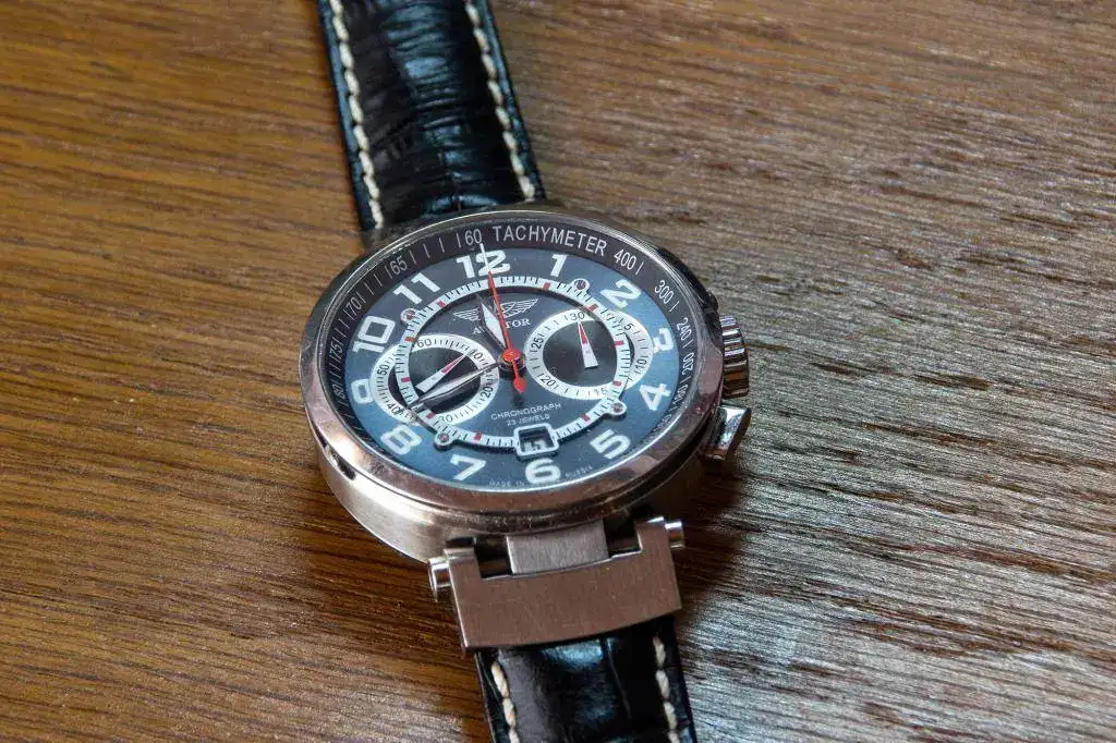 Por restructuración de caja, pongo a la venta este magnifico Chrono ruso AVIATOR 3133, muy poco visto y serie limitada a 350 piezas. Dispongo del estuche de piel, documentación, garantia sellada (caducada), y caja de carton exterior, todo en perfecto estado.