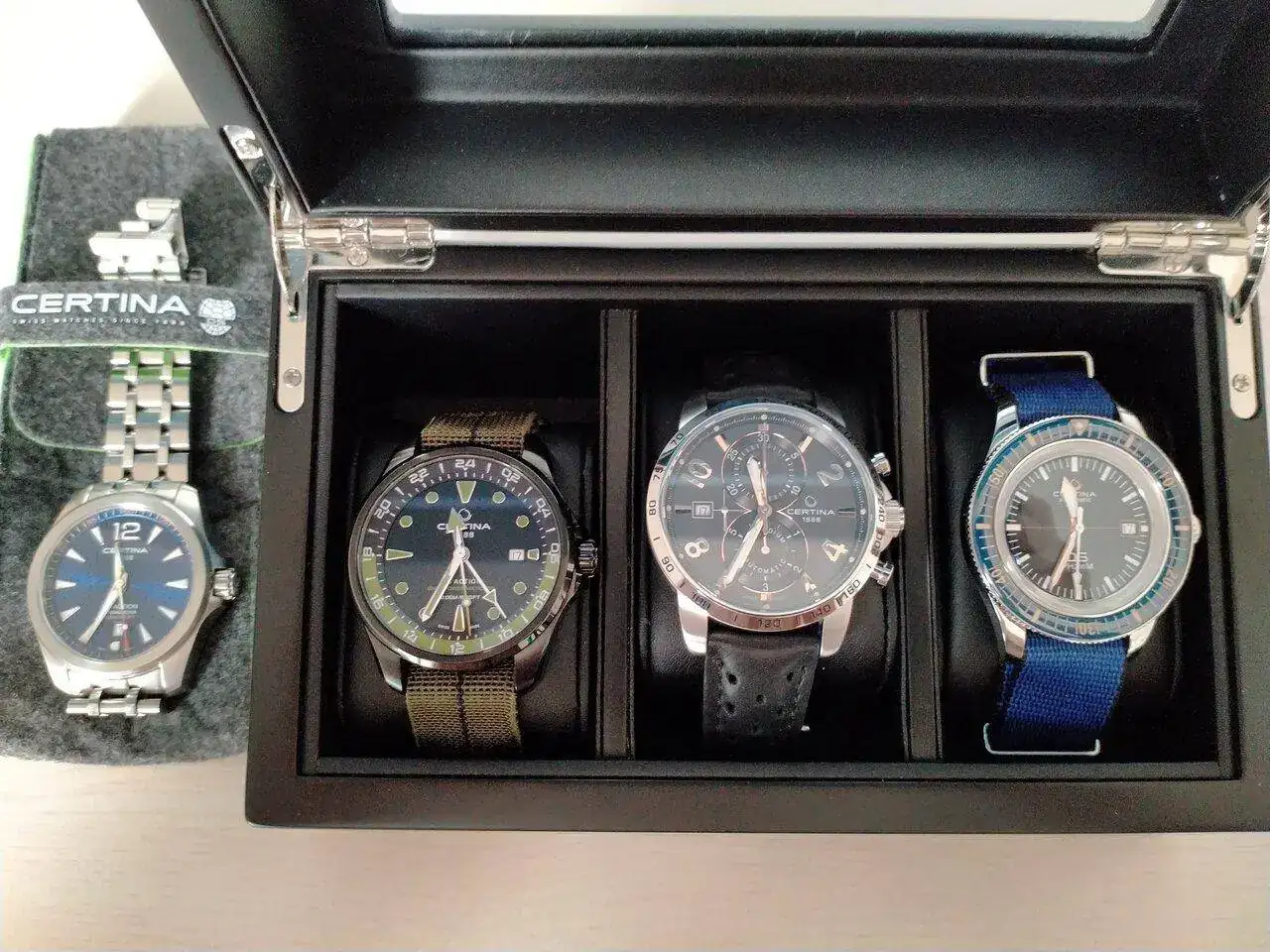 Muy buenacolección, pardiez !!!.Os presento mi modesta colección. Son 4 relojes de la casa CERTINA, que en mi opinión y en línea con mi poder adquisitivo es de lo mejor en la relación calidad/precio. Hablaré de cada uno de ellos por orden de adquisición. He titulado el hilo "robando" al inigualable Frank Sinatra el famoso " a mí manera" de su canción porque en todos los relojes que tengo (no lo hago solo con relojes ... será una especie de toc ...) he aportado mi gusto personal con las correas. He de decir que las que utiliza el fabricante no son para tirar cohetes y quizás por eso me resulta más fácil hacerlo.