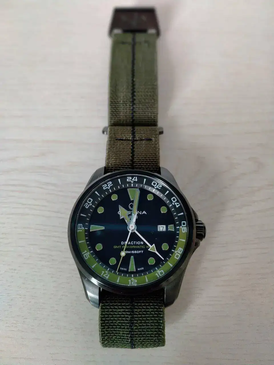 Ver el archivos adjunto 2699185Ver el archivos adjunto 2699186Ver el archivos adjunto 2699187El siguiente es un GMT DS Powermatic80. Lo compré online sin haberlo tenido antes en la mano. Su estética imponente me atrajo desde el momento que que lo descubrí. La función GMT (que a algunos no les dice absolutamente nada) a mí me atrae mucho. Lo llevo indicando la hora UTC (como en el tacógrafo del autobús con el que curro). Sólo tengo que mover la aguja de las horas en el cambio de horario ... me encanta ...