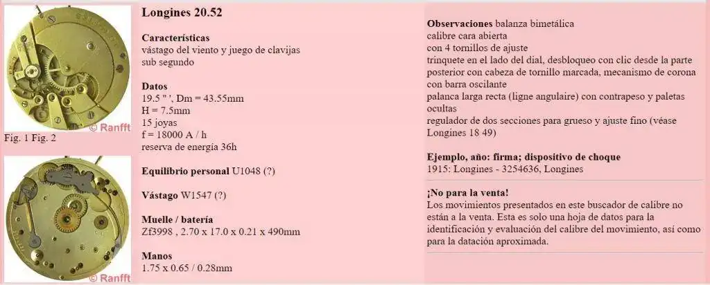 La información está en rumano, pero con cualquier traductor, por ejemplo el de google, se puede uno hacer idea de lo que dice. Los números de serie que figuran en los relojes del calibre 20.52 son muy próximos a los del reloj que muestro, así que me inclino a pensar que todo o al menos gran parte del reloj que muestro es original Longines.