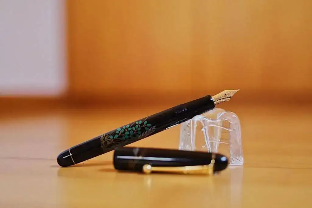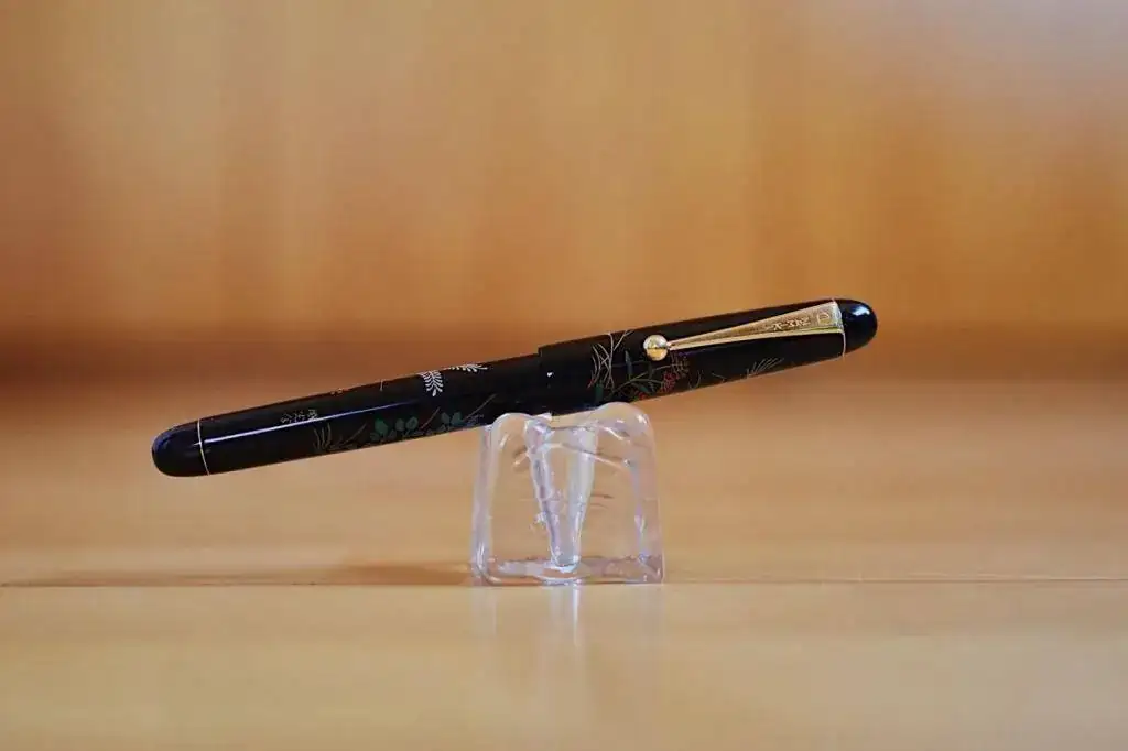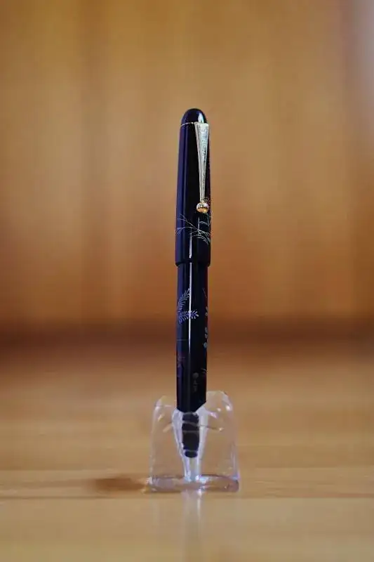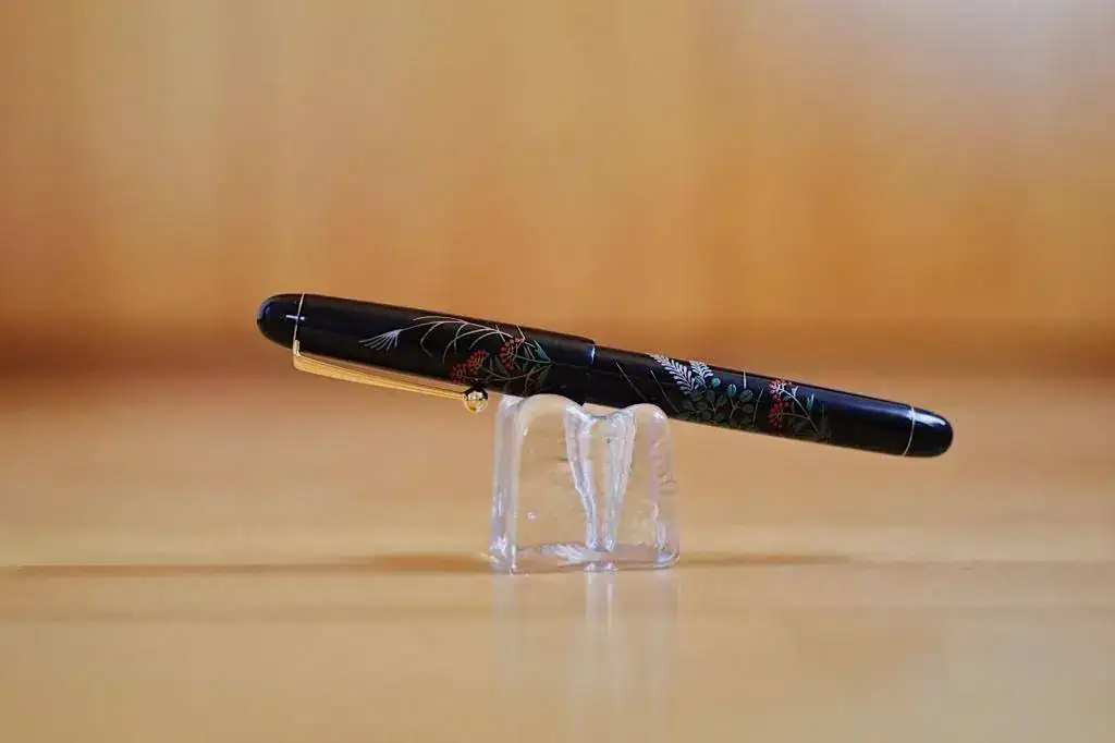 Es una lástima que las fotos del móvil no puedan recoger con fidelidad el colorido y el relieve de los gravados. La pluma es idéntica a la que podéis contemplar con mejor calidad fotográfica en el siguiente enlace: