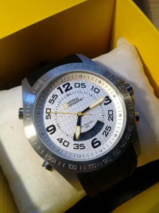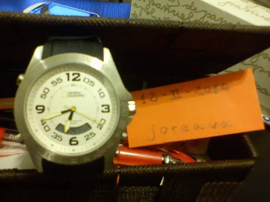 A ver, se trata de un reloj National Geographic de reestreno, tiene una puesta, (cuando lo llevé para ponerle la pila, me lo traje puesto). El reloj está practicamente nuevo, 97/100. Me vino proveniente de un cambio, pero la verdad es que se ha quedado olvidado en su caja. Os detallo brevemente las carcateristicas