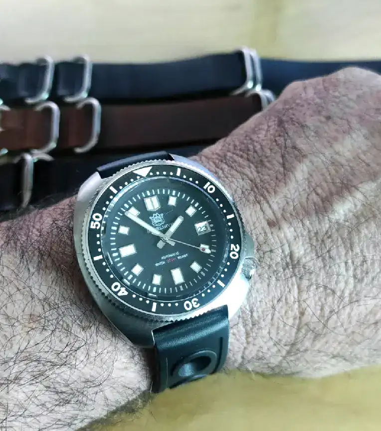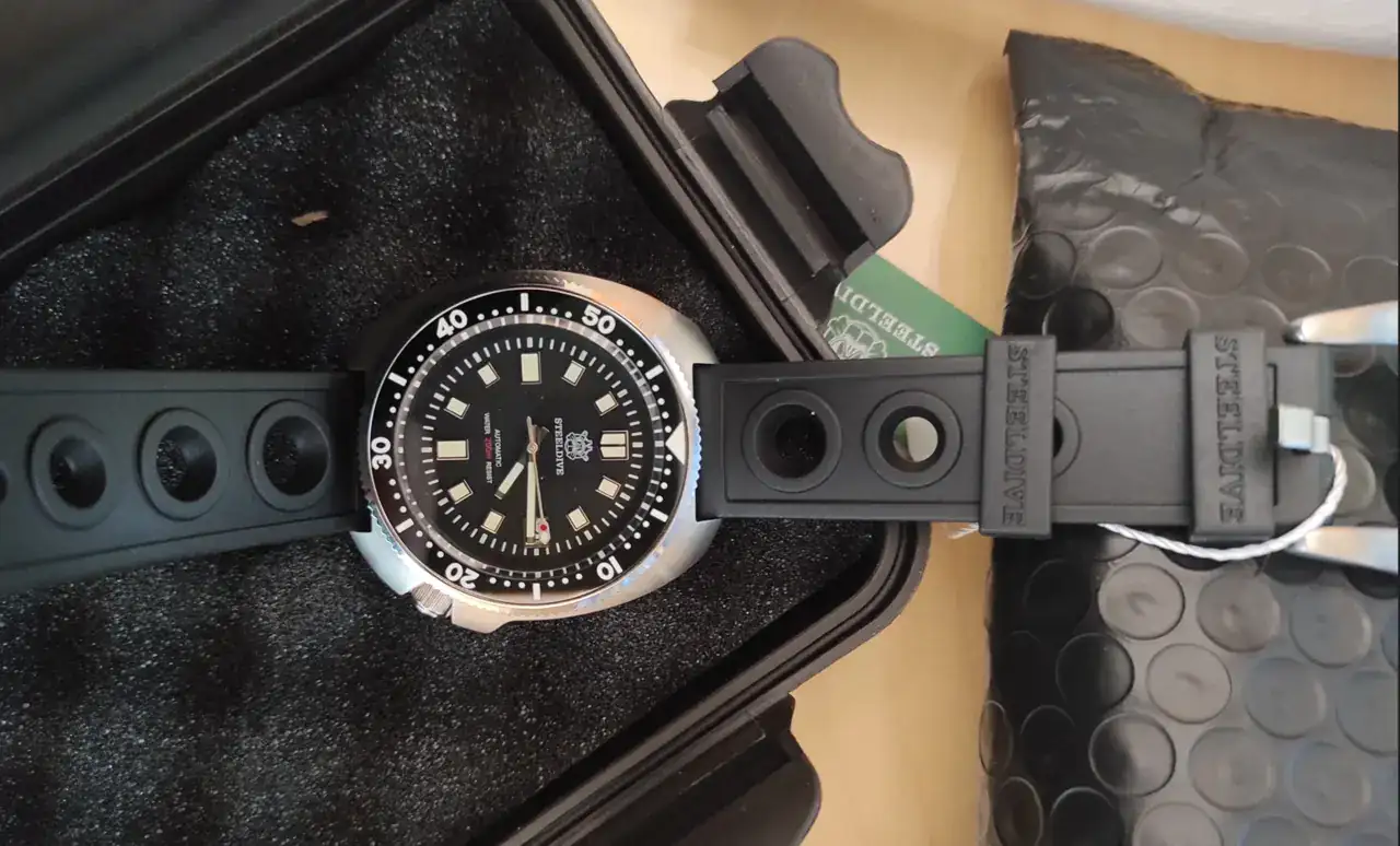 Hace unos días me llegó mi cap. Willard de Steeldive en su cofre y con la correa de goma perforada, fruto de las recomendaciones de los compañeros del foro y de visualizar bastantes videos hablando de las bondades y características del homenaje del Seiko Prospex.