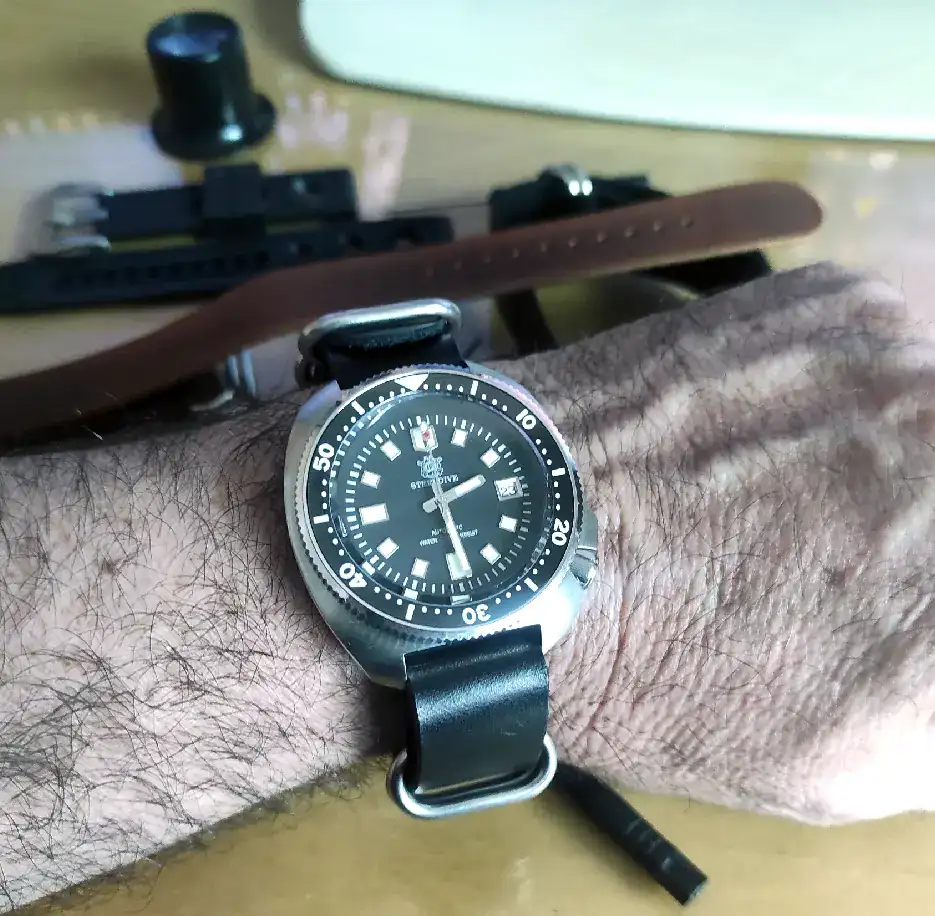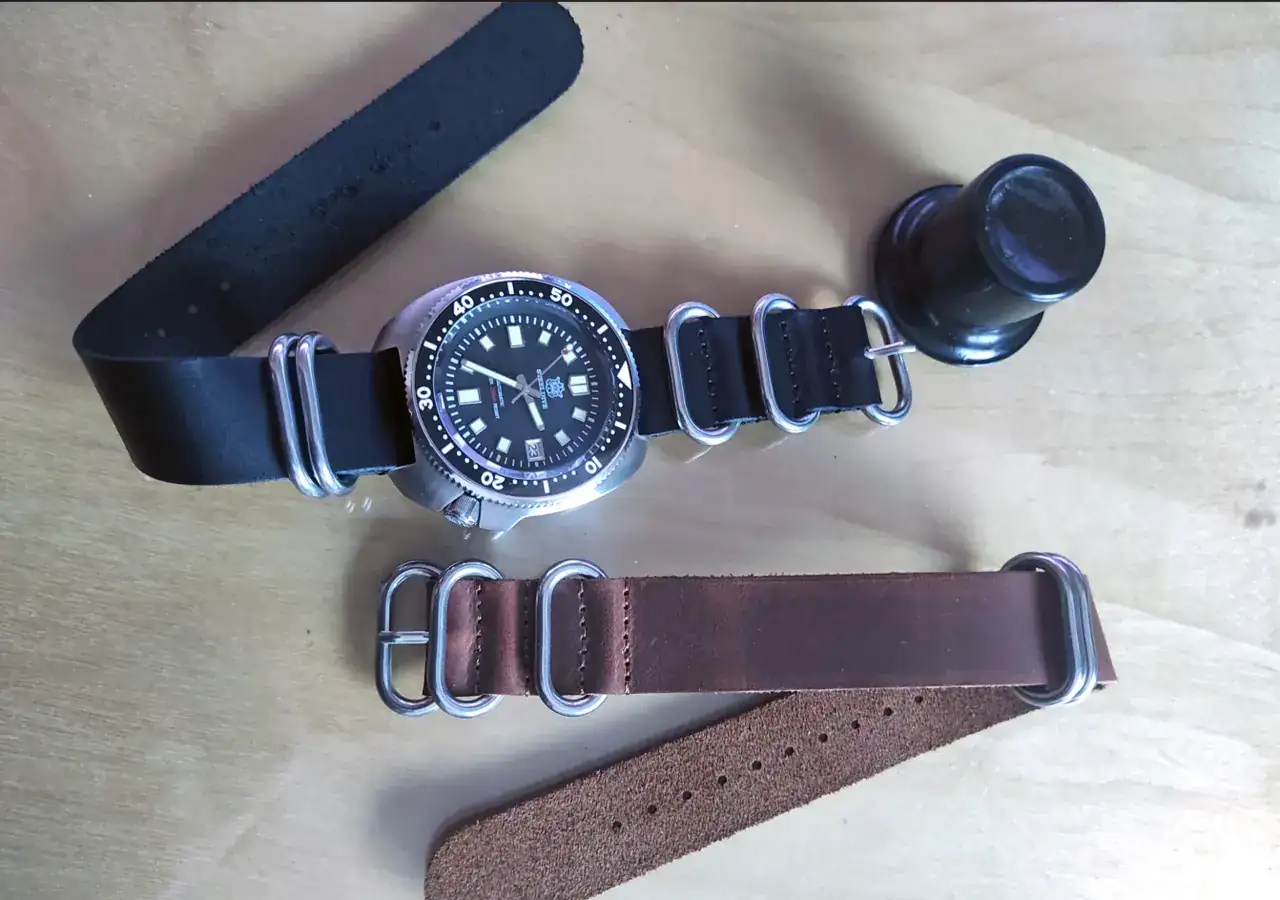 Como he visto otros diver con natos militares, quería probar qué tal le quedaba a este reloj y pedí en Ali un para de natos de piel.