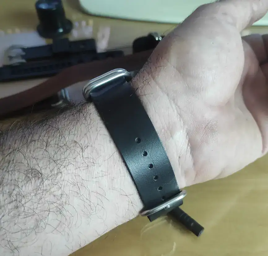 además la hebilla queda desplazada a un lado y la tira de cuero te hace presión en la muñeca y te corta la circulación