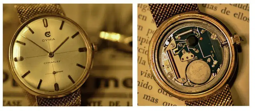 Abderraman II ese Cyma tiene su historia particular. Es de un familiar, me cuentan que cada vez la cuerda le duraba menos y se la fueron cortando... Hasta que llegó el momento que no daba para más y hace ya bastante tiempo le cambiaron por completo la maquinaria, como puede apreciarse en la foto-montaje que he puesto.
