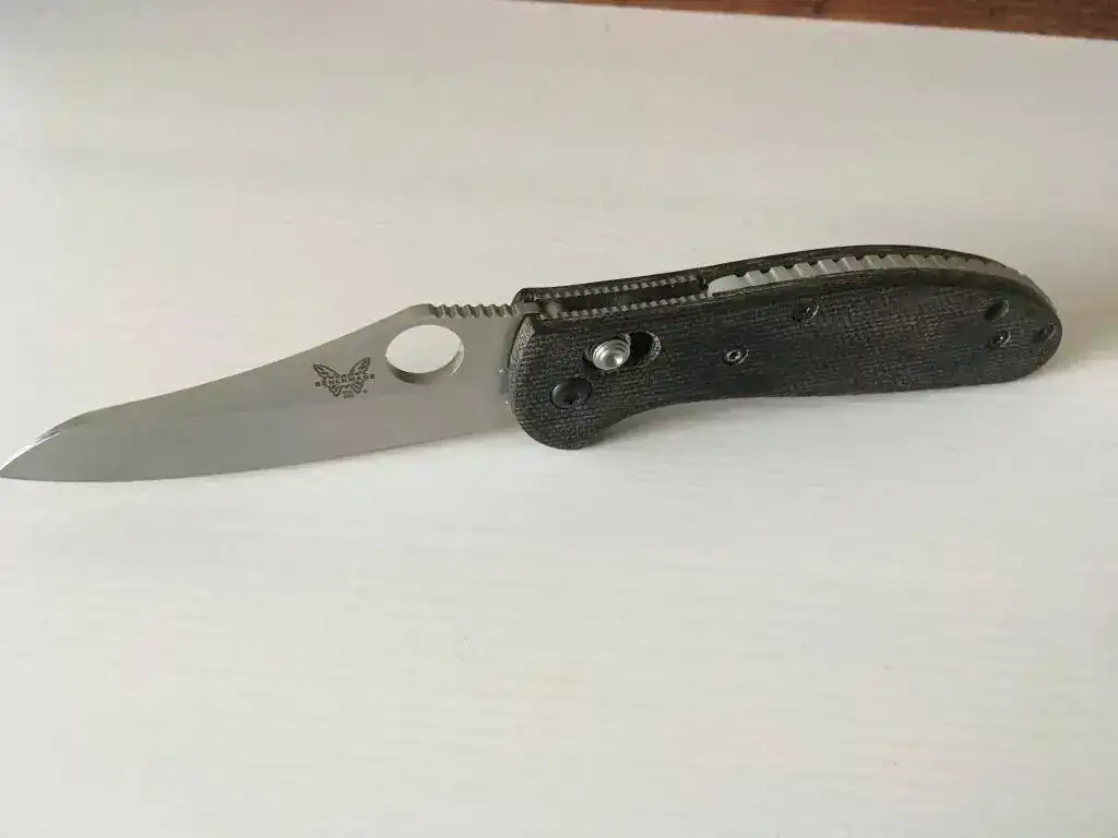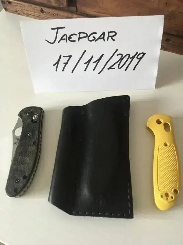 Buenas tardes , pongo en venta esta navaja táctica Benchmade con cachas en micarta customizadas por Cuscadi. La navaja nunca se ha utilizado y se envía con una fantástica funda de piel de Urban EDC Supply con compartimento para la navaja y también para bolígrafo táctico. El precio del conjunto sin 120€ enviado por correo certificado.