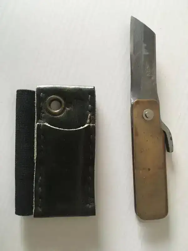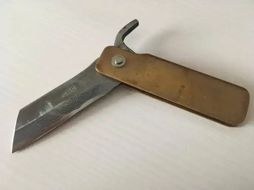 Buenas tardes , vedo esta navaja Higonokami japonesa con hoja de acero de Damasco y cachas de laton. Se envía con funda de piel verde oscura de Hitch & Timber con compartimento para la navaja y para bolígrafo. El precio del conjunto son 55€ enviado por correo certificado dentro de la península.
