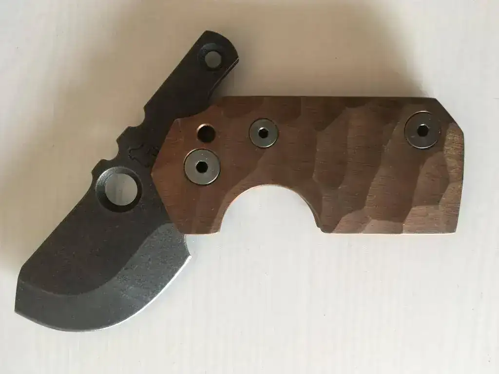 3º NAVAJA MACHETE GORILLA BLADE WORKS COBRE MACIZO: Se trata de un pequeño pero contundente machete fabricado por Gorilla Blade Works ya imposible de conseguir con apertura estilo friccion y cachas molduradas de cobre macizo. Su precio 66€ enviado por correo certificado.