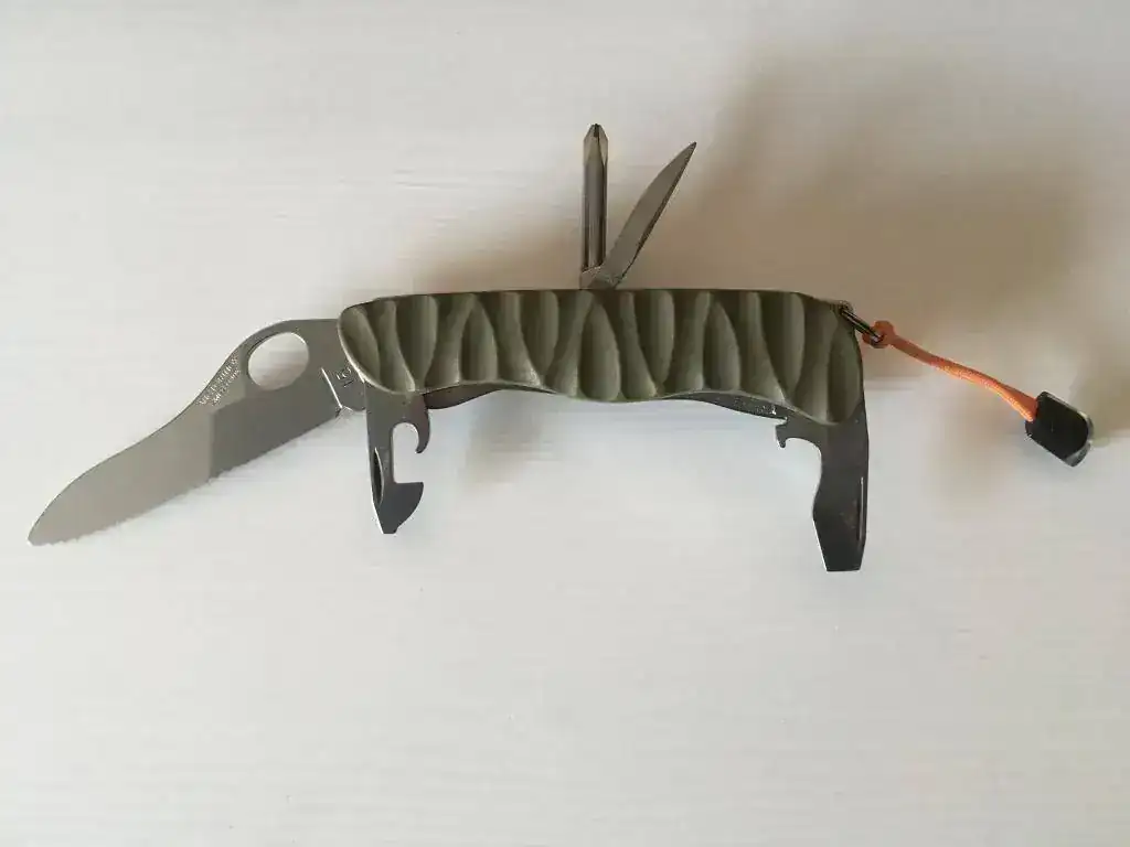 2º NAVAJA VICTORINOX SOLDIER CUSTOMIZADA POR CUSCADI: Se trata de una navaja multiusos del modelo Soldier de Victorinox customizada por la empresa Cuscadi. La customización se basa en sustitución de las cachas originales por unas de G10 verde militar molduradas para mejor agarre, clip de acero inoxidable lavado a la piedra y cordon acollador original Victorinox. Su precio 60€ enviada por correo certificado.
