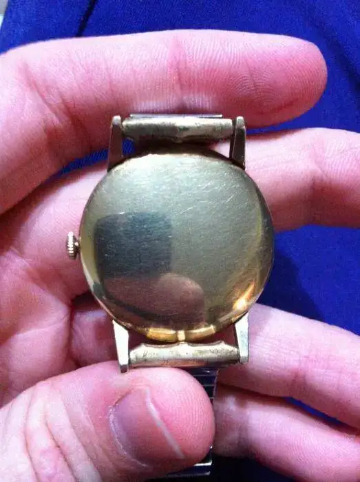 La corona del reloj también esta firmada por omega y en la caja a la altura de las 6 pone W 14k gold.