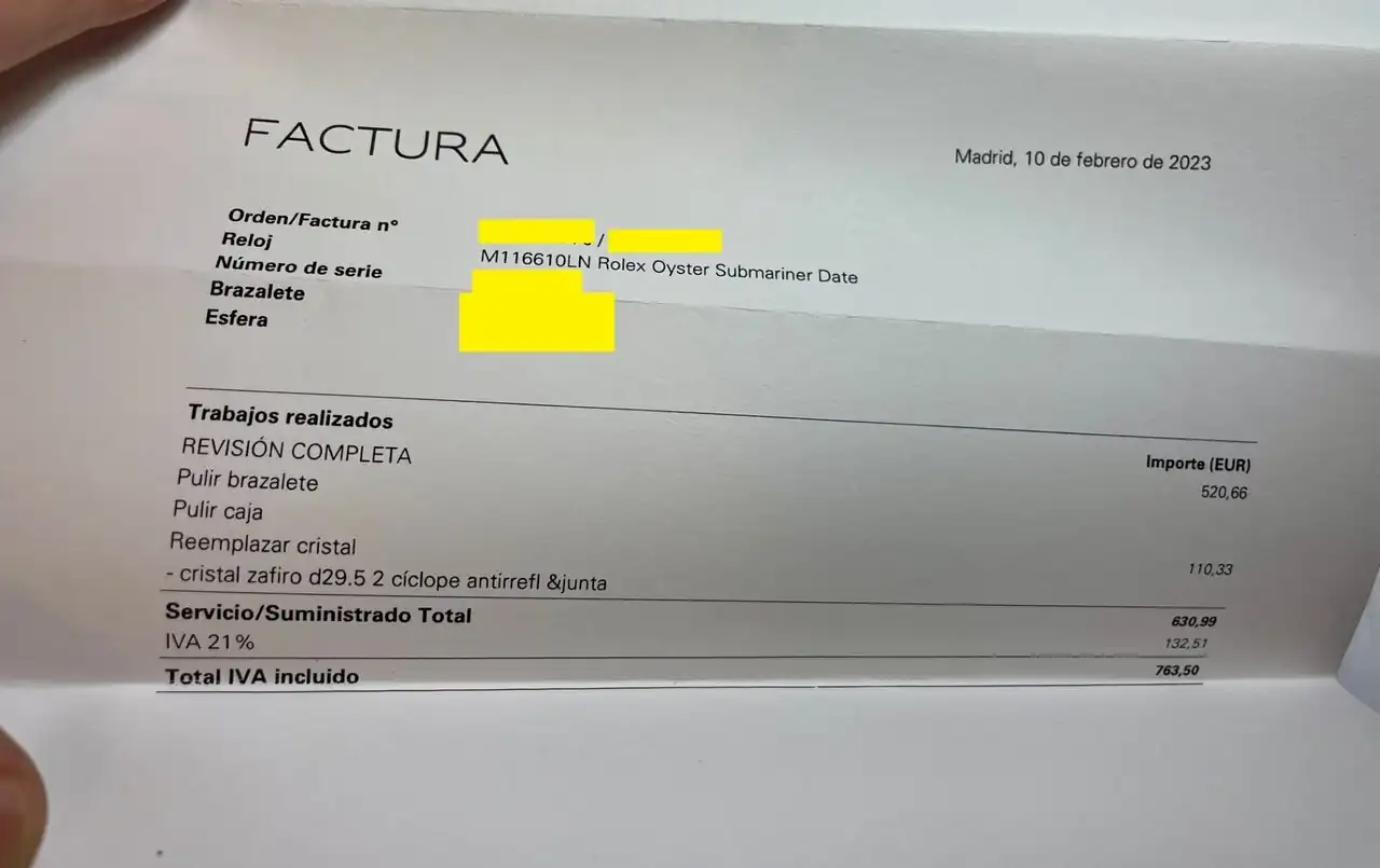 Me dan un presupuesto que acepto el cual consta de revisión y cambio del cristal del zafiro ya que por lo visto la lente cyclops tenía una leve marca que sinceramente nunca aprecié, pero ya puestos decidí cambiarlo.