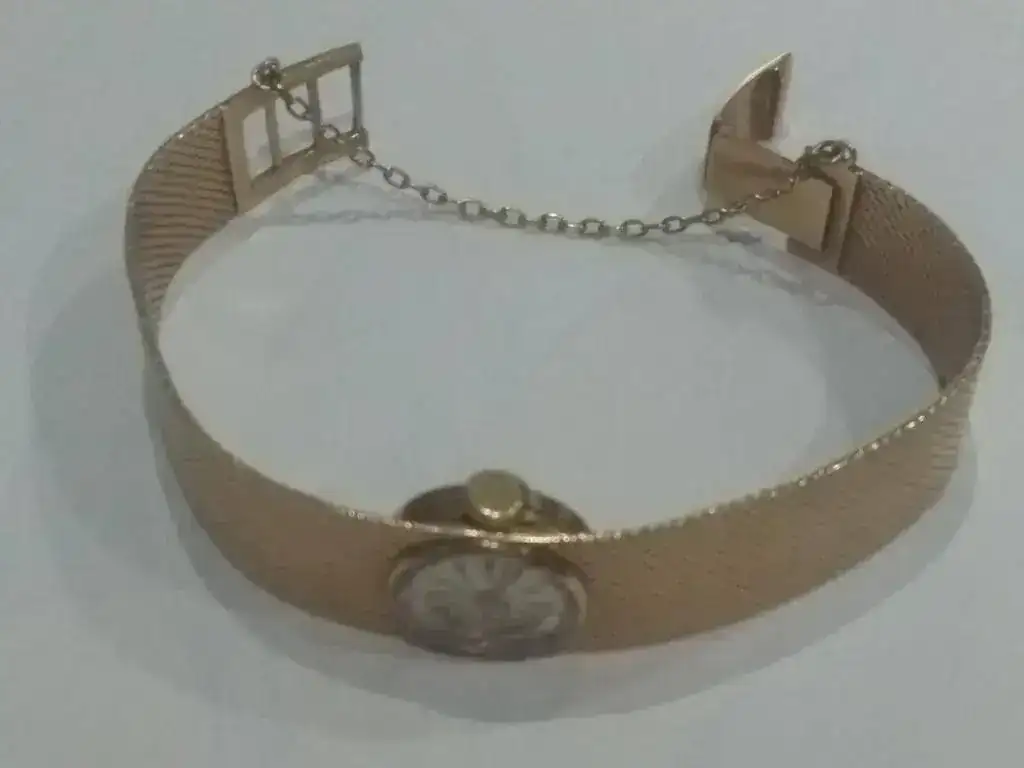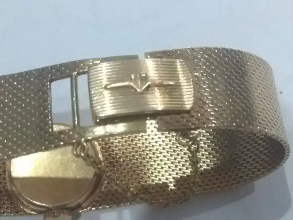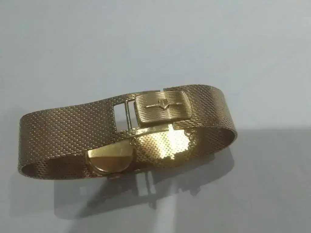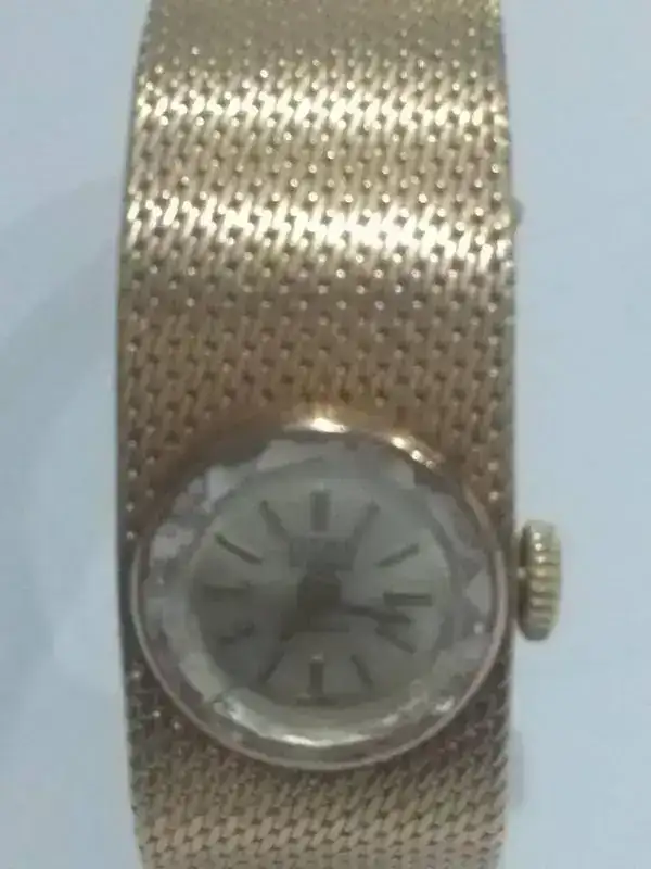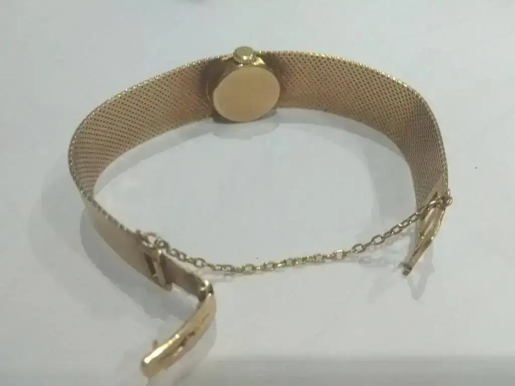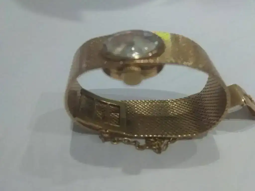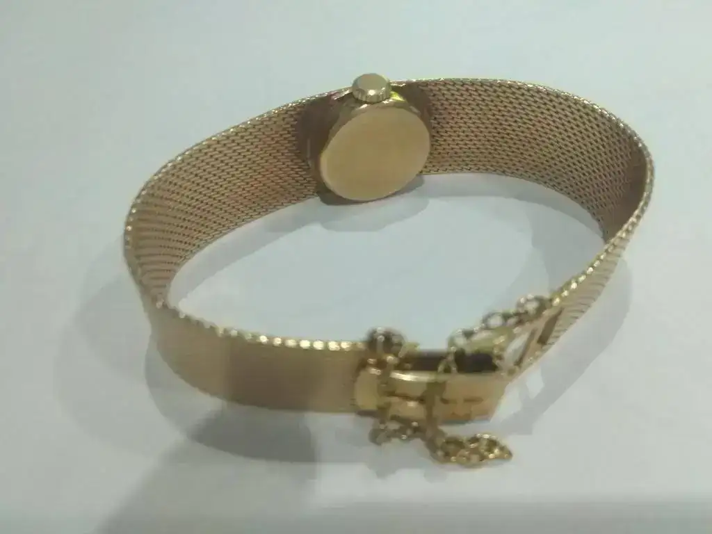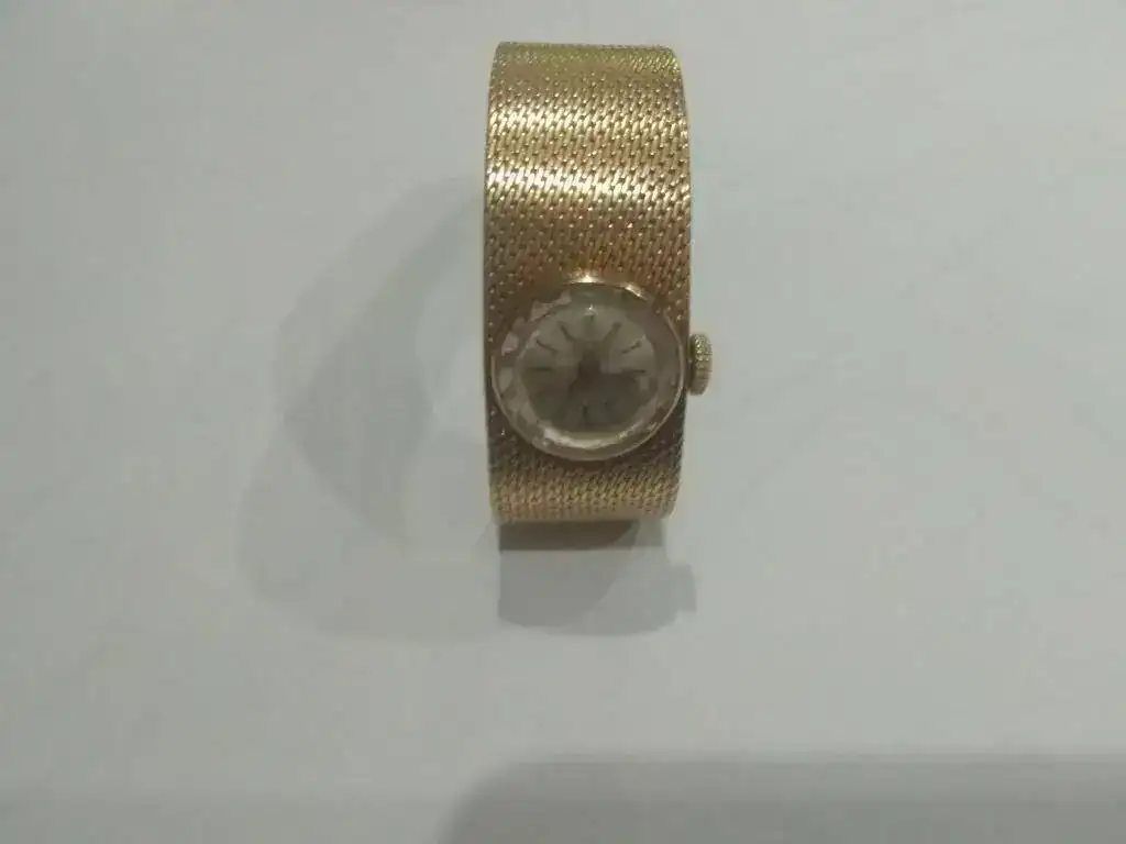 Se trata de un Titan 17 rubís Incabloc de oro (supongo que 18kts) de los años 60. es de carga manual y esta impecable, no tiene marcas de uso rayones golpes ni nada. El peso del reloj es de 33grs.