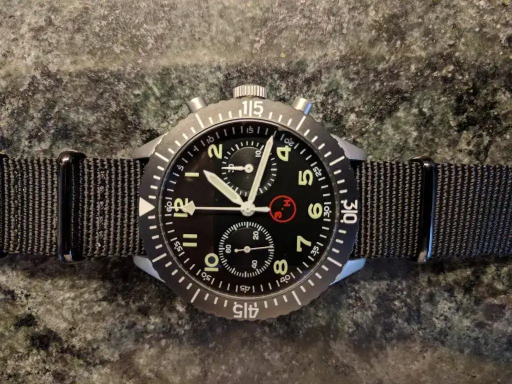 Tengo un crono de carga manual de 42 mm, inspirado en los heuer y sinn de la Bundeswehr.