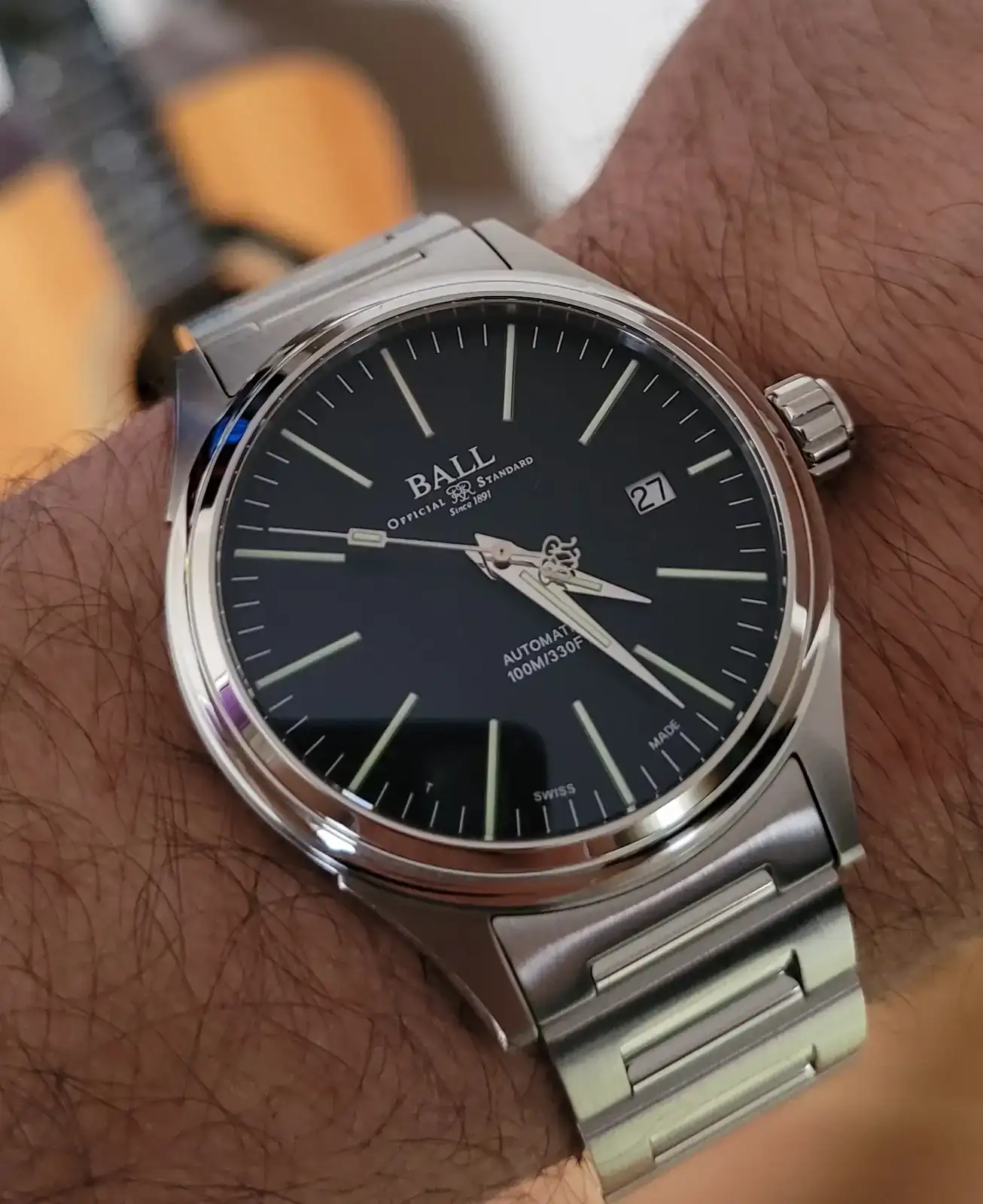 Coincido con la apreciación, no me gusta para nada ese logo en el contrapeso del segundero, lo veo demasiado recargado. Además, lo ponen en todos los modelos, si lo pusieran solo en determinados modelos o ediciones pues no estaría mal. Tampoco me gustan esos eslabones centrales del brazalete tan sobredimensionados, y eso también lo hacen en muchos modelos con brazalete. Para mí los Ball son un "sí pero no".