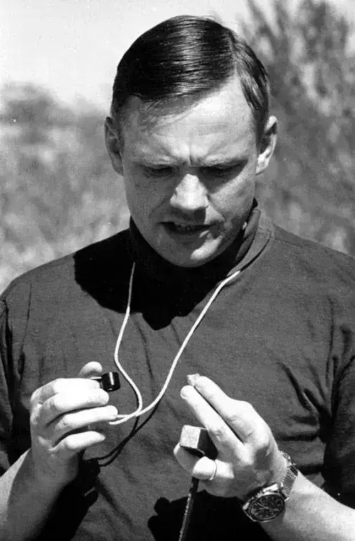 Como media hora antes de pisar la luna, al parecer Armstrong pone en marcha su reloj, según la transcripción de las comunicaciones. ¿lo dejaría en el módulo como se dice o se lo llevaría?