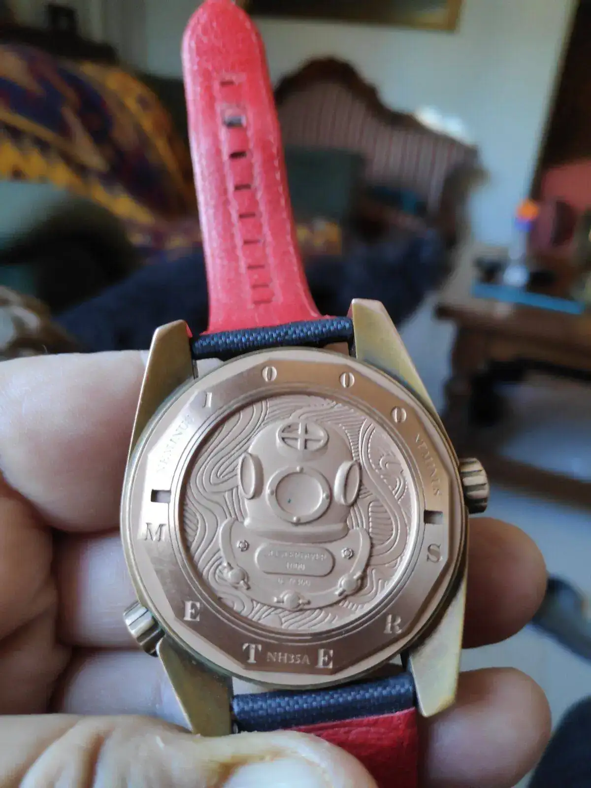 A primera vista os parecerá un tocho, pero no os engañeis: lo es, pero me encanta llevarlo y cuando te acostumbras es muy cómodo, ni te enteras que lo llevas. Yo lo compré porque me encandiló esa estética marina con el segundero en forma de tridente y el dial que parece el fondo del mar. Total que una vez en mi colección ahí se va a quedar. No pienso bajar 1000 m a no ser que me aten a un pedrusco, pero flipo cuando lo llevo. Parece sacado de 20.000 leguas de viaje en submarino.