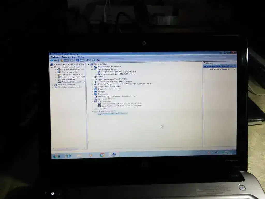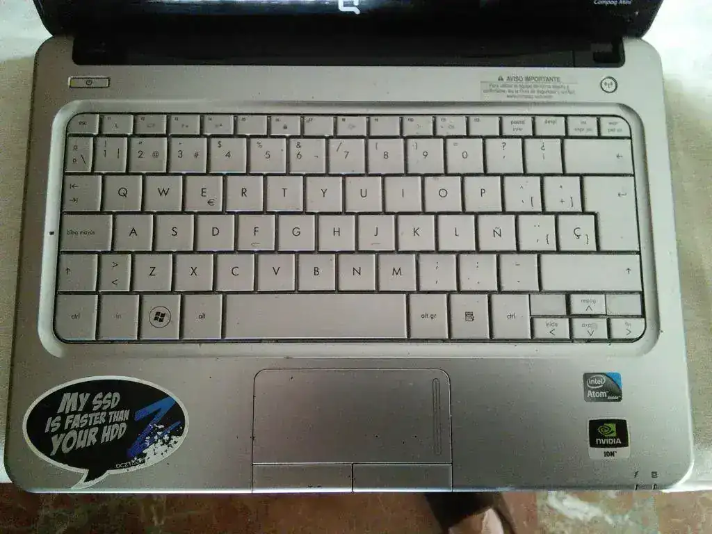 Vendo Compaq mini mod 311c-1010SS Está en buenas condiciones, no tiene ningún golpe solo signos de uso en el touchpad pero nada de desconchones por golpes, solo por el uso. La pantalla se ve como nueva. La pila aún tiene duración una media hora a una hora según el uso, lleva su transformador y cables de alimentación. Microprocesador Intel Atom N270 de 1,60 GHz con cache 512 MB de nivel 2