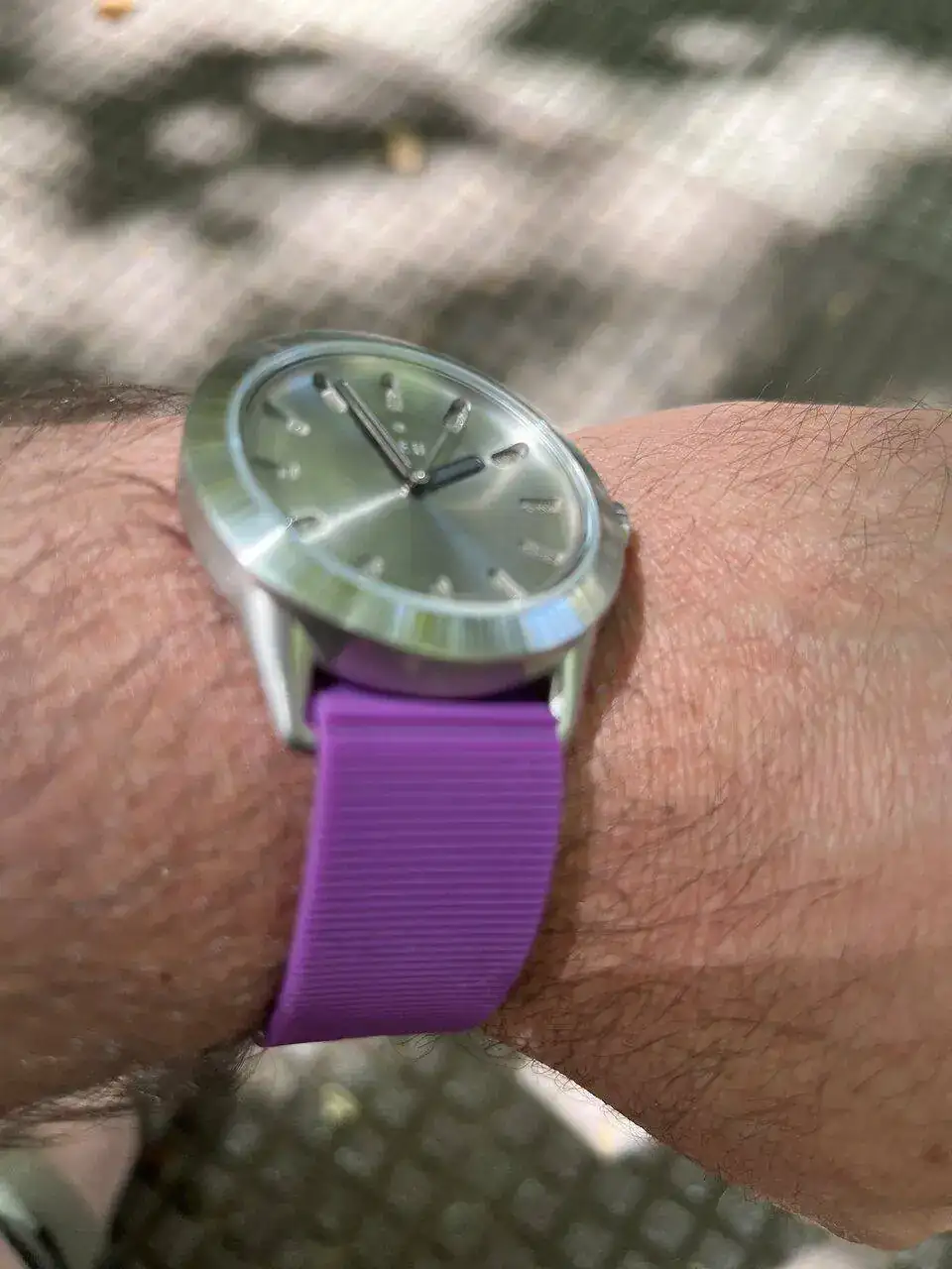 Su correa(pese al color tan peculiar)es increíblemente blanda y ergonomica muy muy adaptable